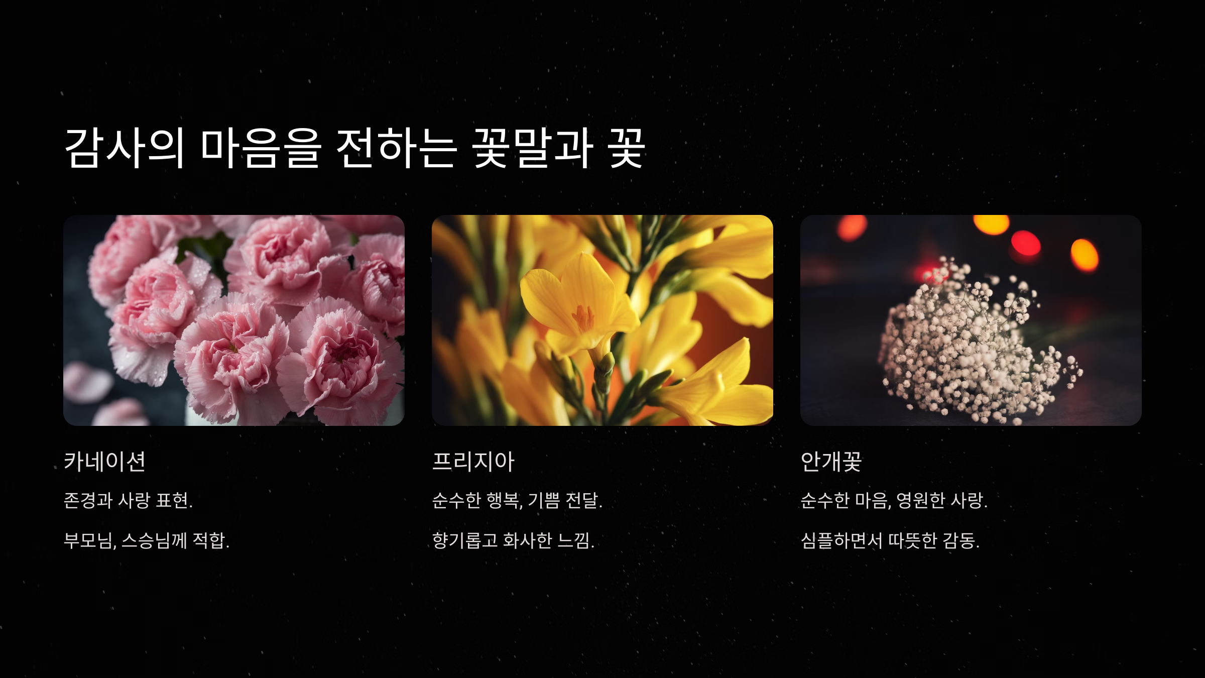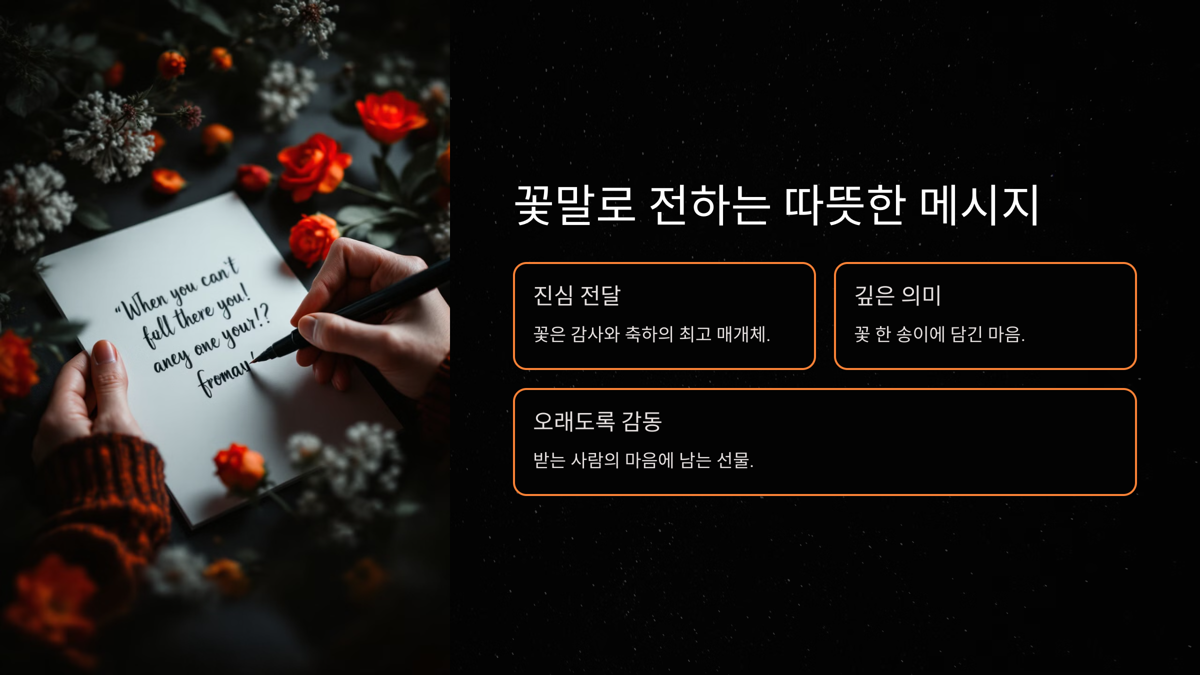 "당신의 따뜻한 마음과 헌신에 진심으로 감사드립니다. 이 꽃에 저의 마음을 담았습니다."
