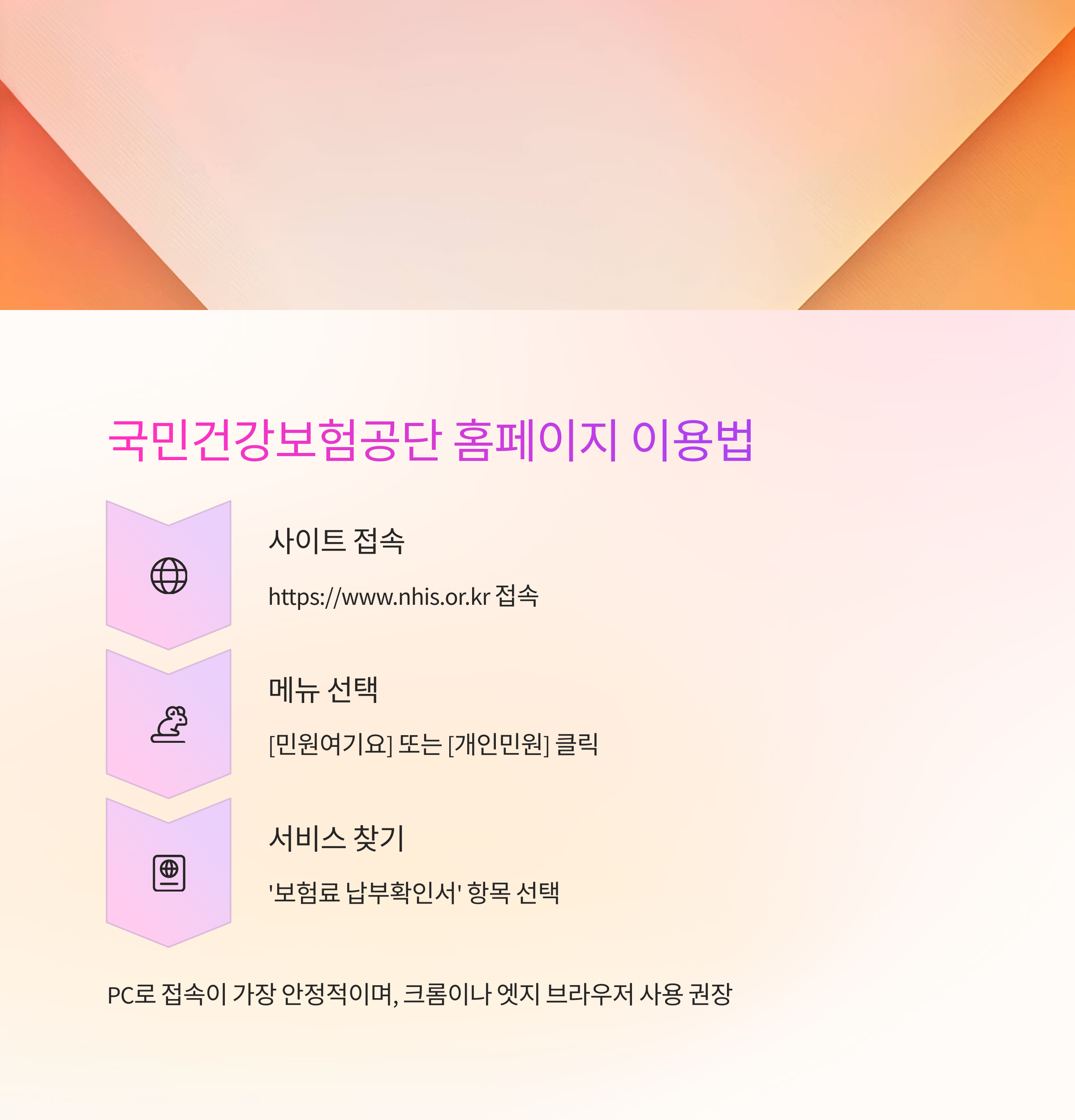 홈페이지는 PC로 접속하는 게 가장 안정적이며, 브라우저는 크롬이나 엣지를 사용하는 게 좋아요. 간혹 액티브X나 보안 프로그램 설치를 요구하는 경우가 있으니, 알림창을 잘 확인하고 설치를 진행하면 돼요.
