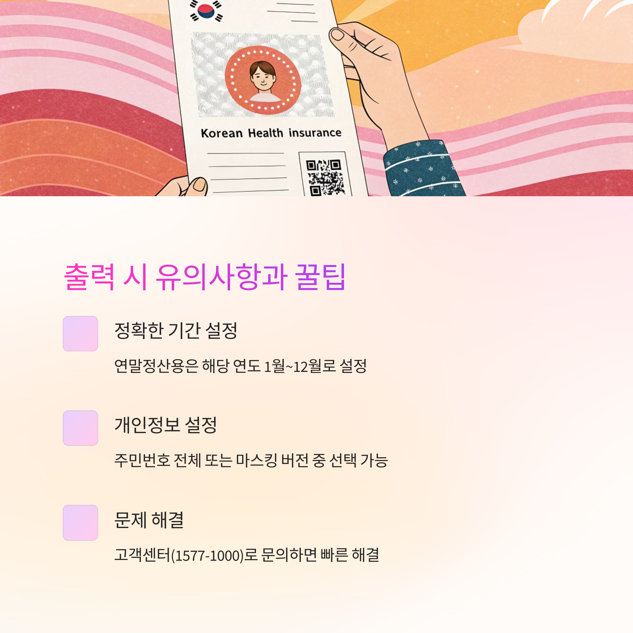4. 출력에 문제가 생겼을 경우에는 국민건강보험 고객센터(1577-1000)로 문의하면 상세한 안내를 받을 수 있어요. 평일 업무시간 중 문의하면 빠르게 해결되더라고요!