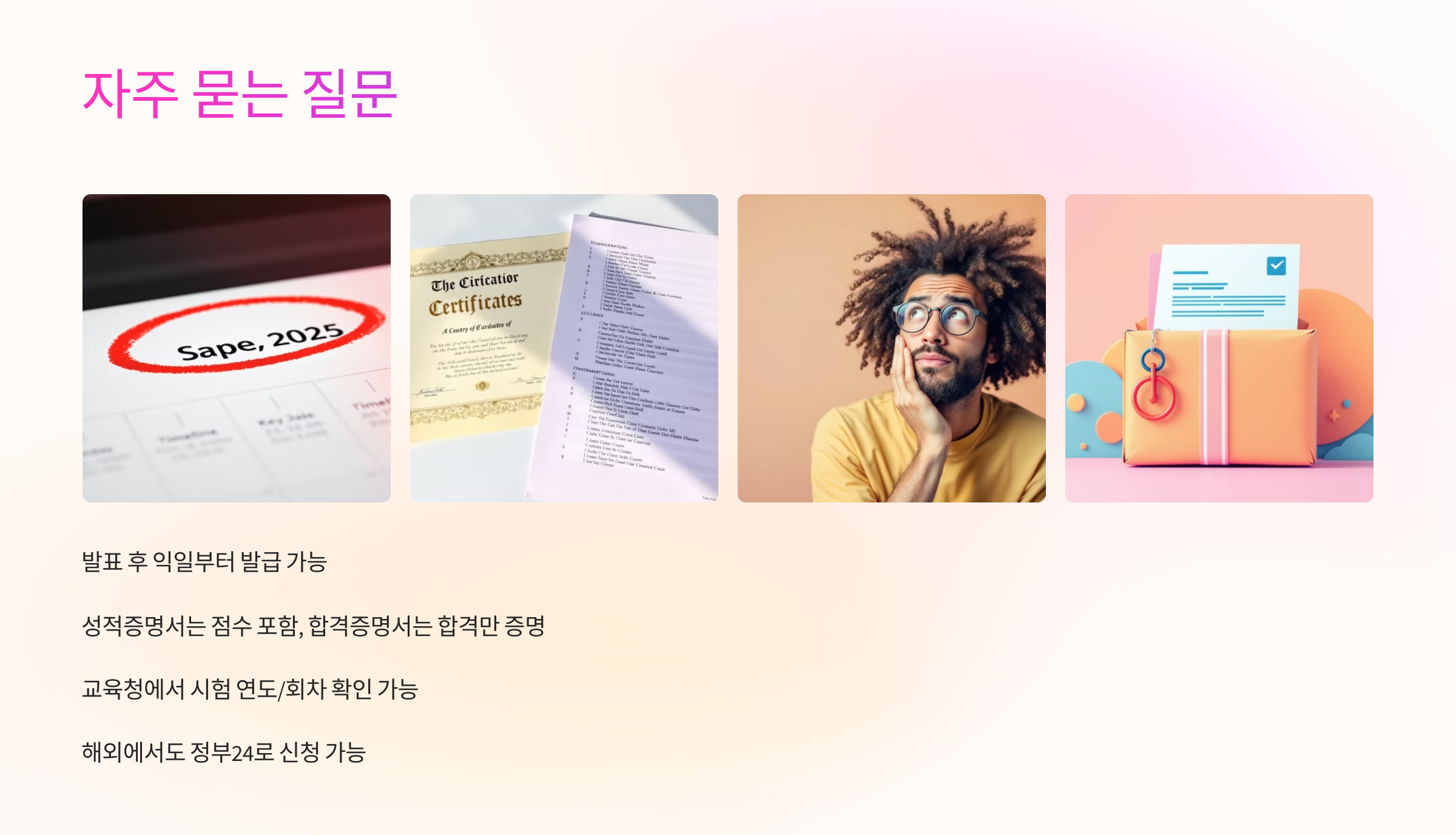 A1. 시험 결과 발표 이후부터 바로 발급 가능해요. 보통 발표 후 익일이면 신청할 수 있어요.