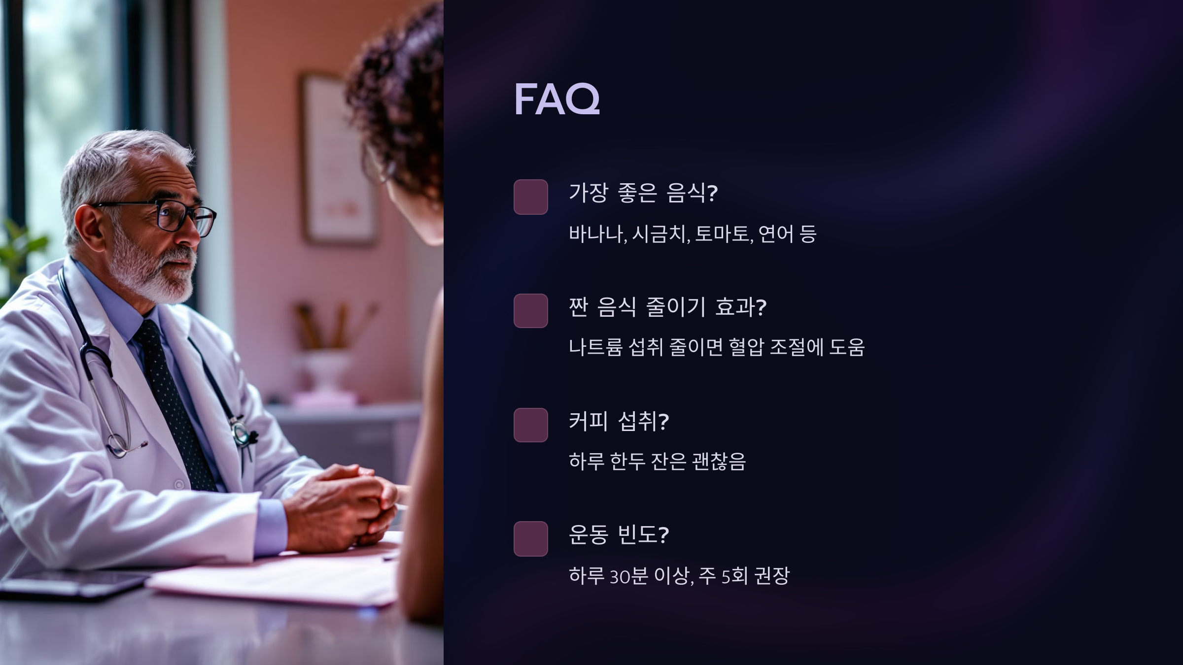 A2. 네! 나트륨 섭취를 줄이면 혈압 조절에 큰 도움이 돼요.