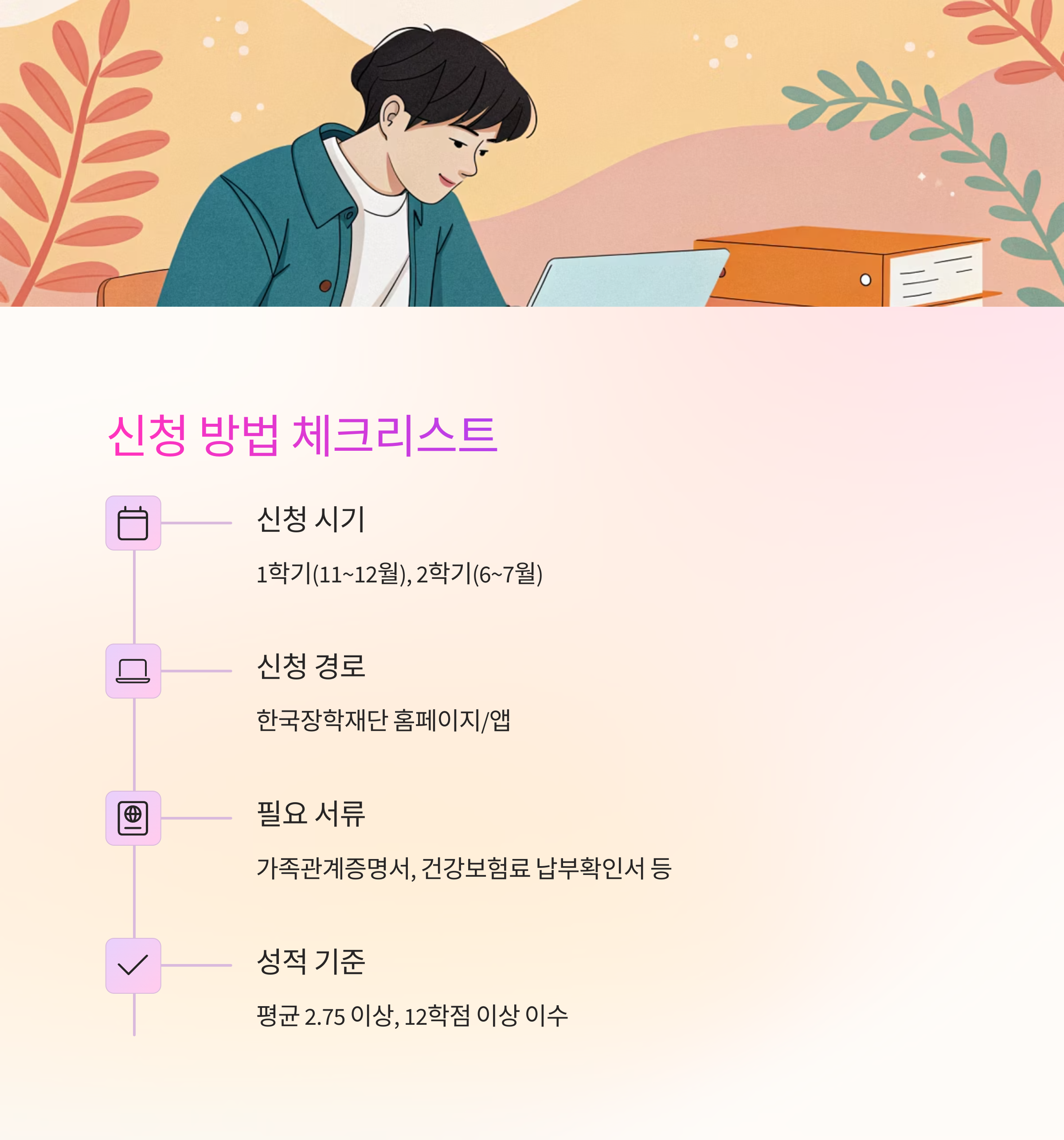 해당 조건에 해당된다면 반드시 증빙서류와 함께 사전에 확인하고 신청하는 게 좋아요. 누락 시 장학금 대상에서 제외될 수 있으니 주의해야 해요! 🙋