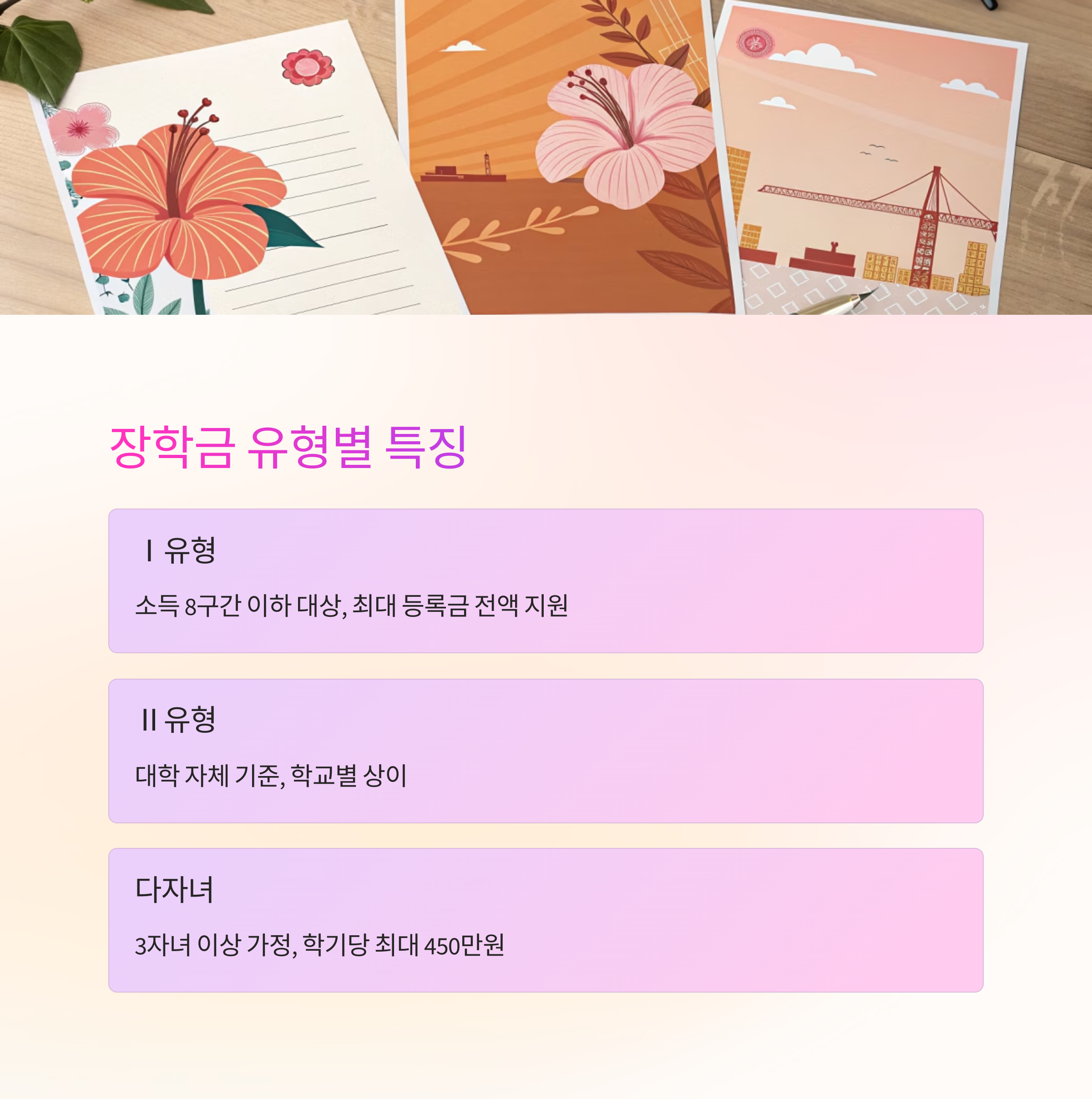 Ⅱ유형은 대학 자체의 지원 성격이 강해요. 학교가 재정 여건에 따라 자율적으로 운영하며, 주로 국가가 배정한 장학금 외의 예산으로 추가 지원을 해요. 이 경우, 학교별로 지원 조건이나 규모가 다르기 때문에 입학 전 확인이 꼭 필요하답니다.