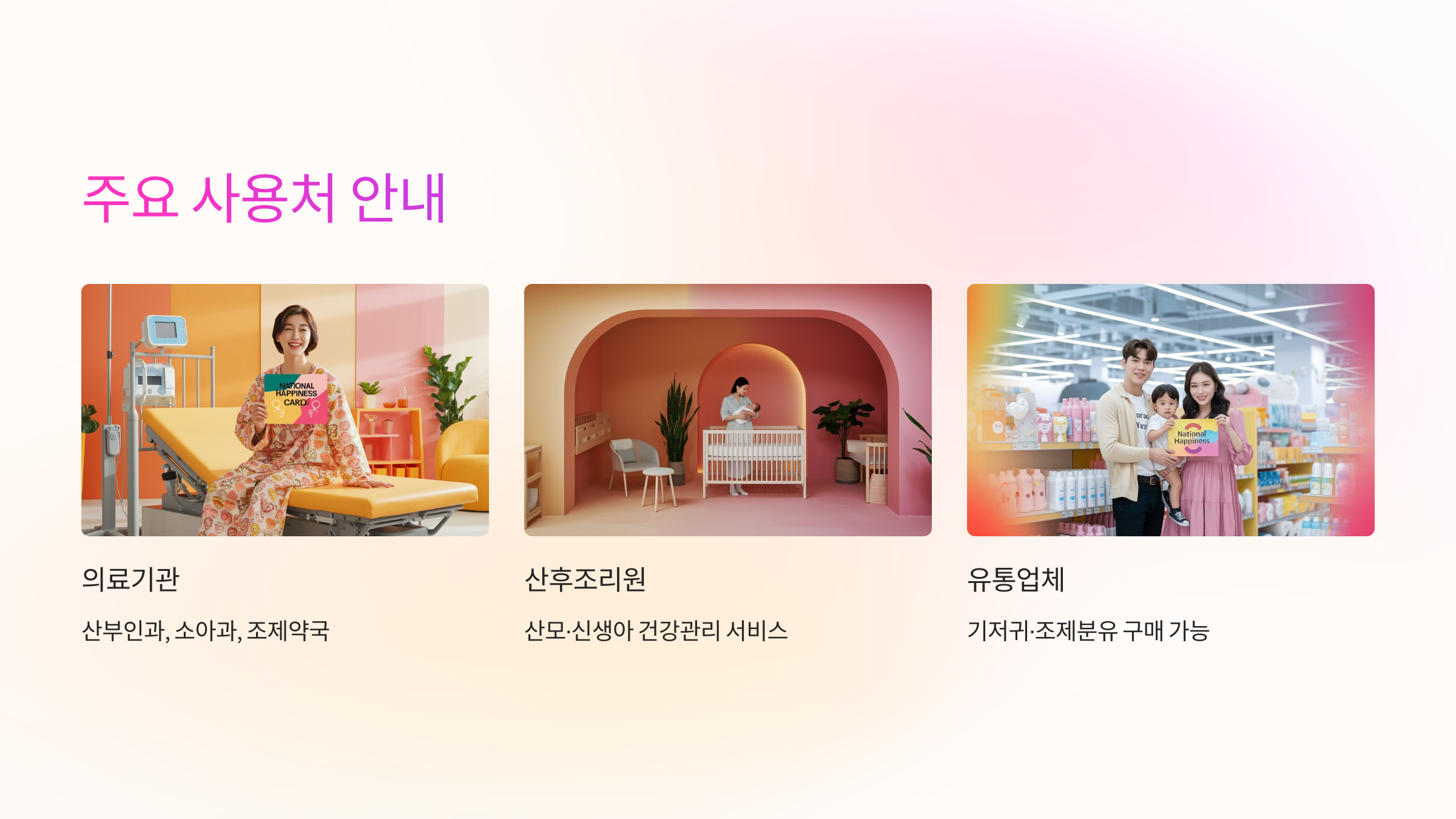 | 사용처 | 지정된 병원, 약국, 복지시설에서만 사용 가능 |