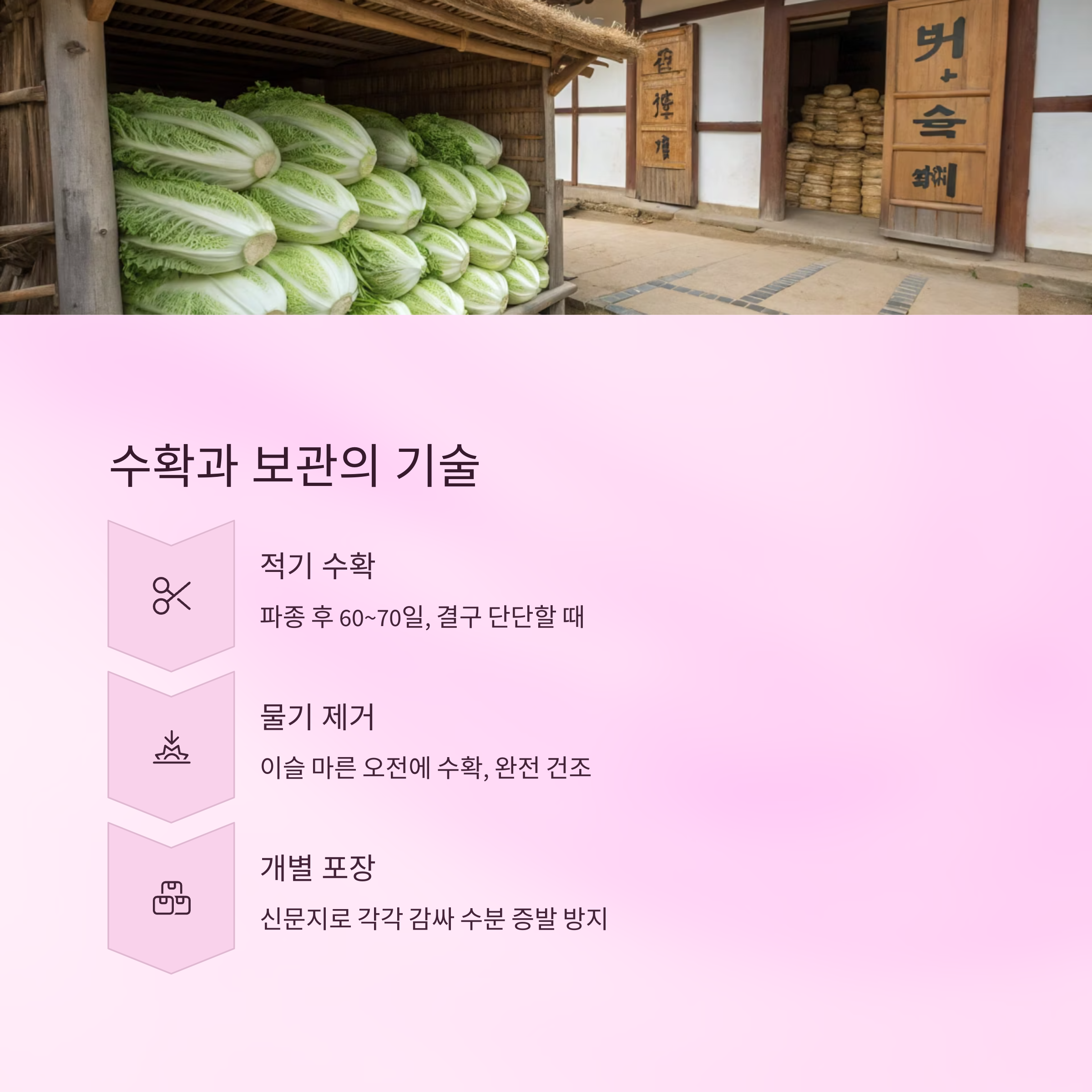 수확한 배추는 보통 2~3개월까지도 보관이 가능하지만, 장기 저장이 목적이라면 무른 품종보다는 단단한 저장성이 강한 품종을 선택하는 게 중요해요. 배추 저장에도 전략이 필요하답니다.🧊