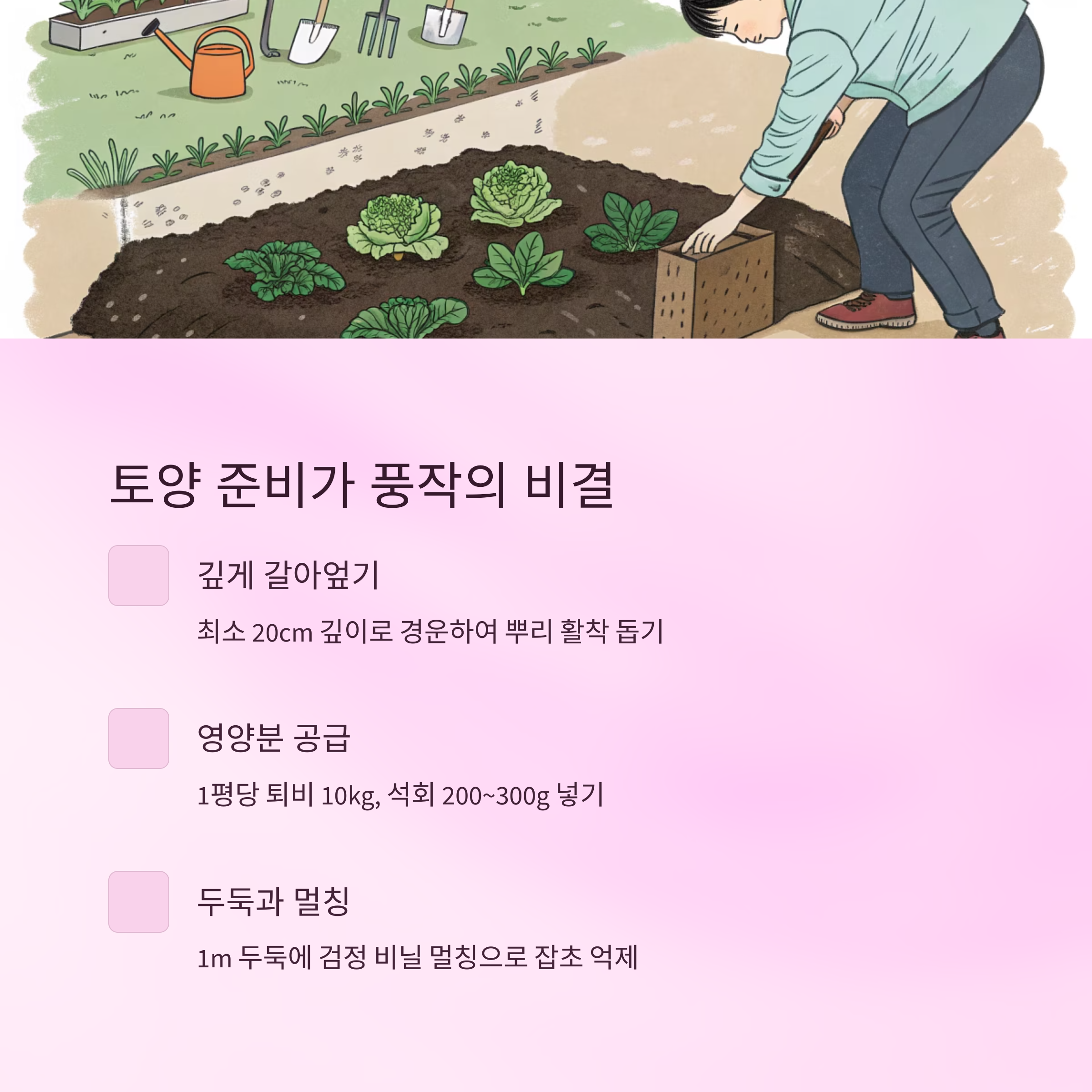 그렇다고 너무 걱정할 필요는 없어요. 지역별 특성만 잘 파악하고 토양 준비를 함께 해주면 성공 확률이 훨씬 높아지거든요. 이제 다음은 배추가 잘 자랄 수 있는 밭을 어떻게 준비하는지 알아볼게요.