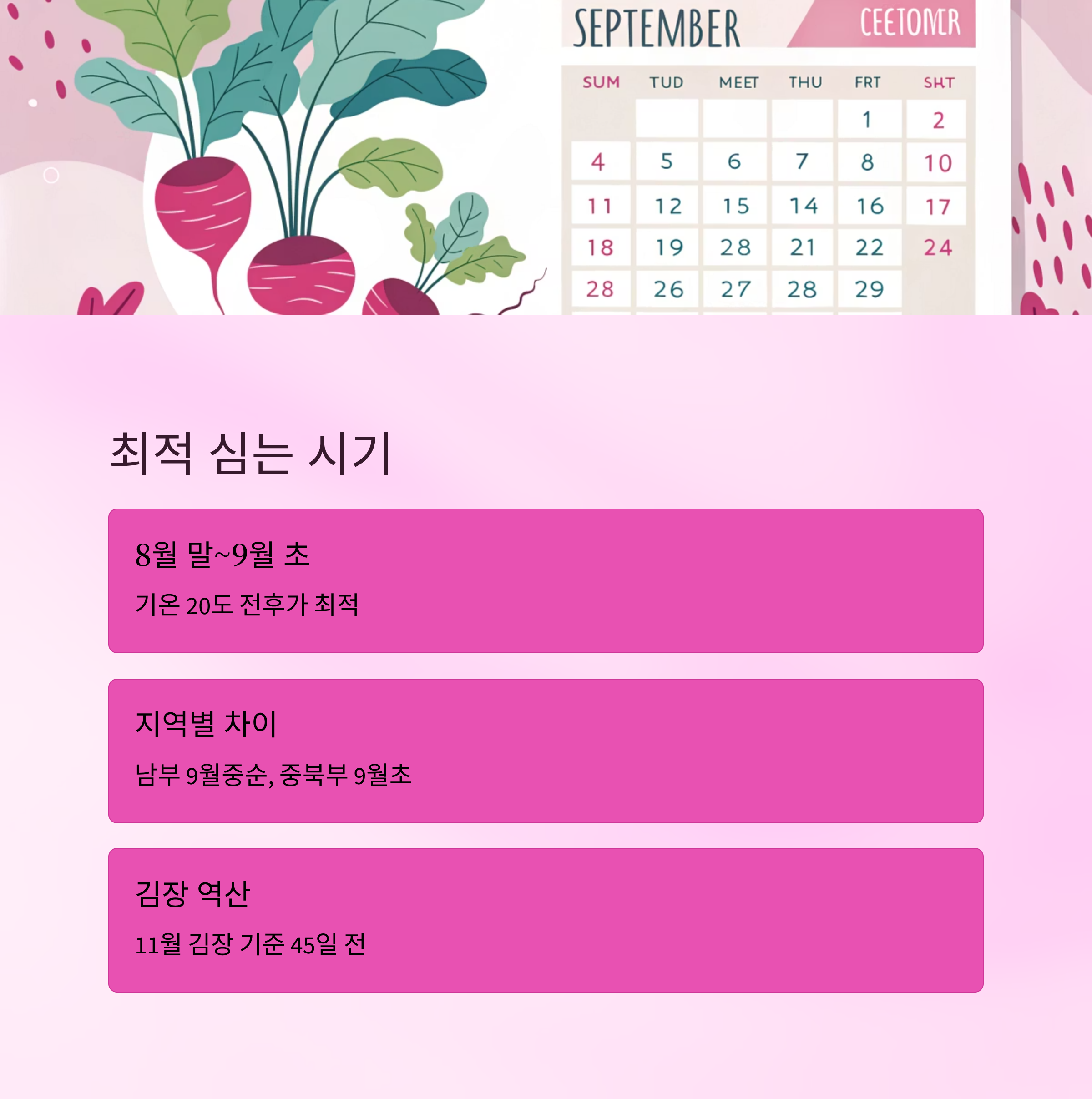 Q1. 김장알타리심는시기는 언제가 가장 좋아요?