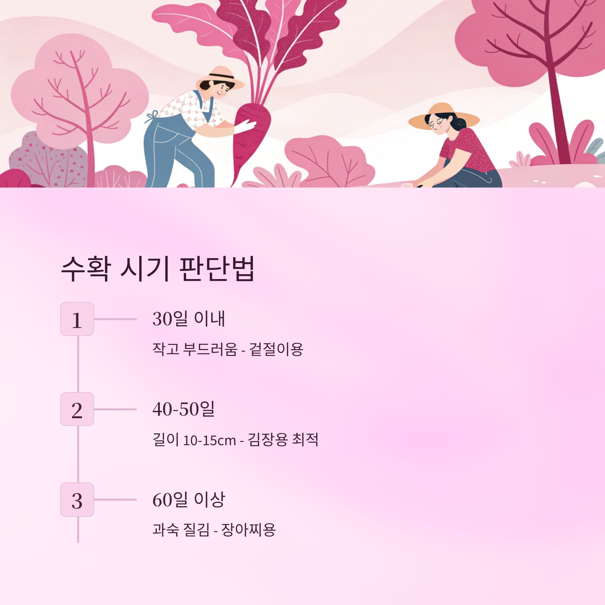 | 40~50일 | 적당히 굵고 단단 | 김장용 최적 |