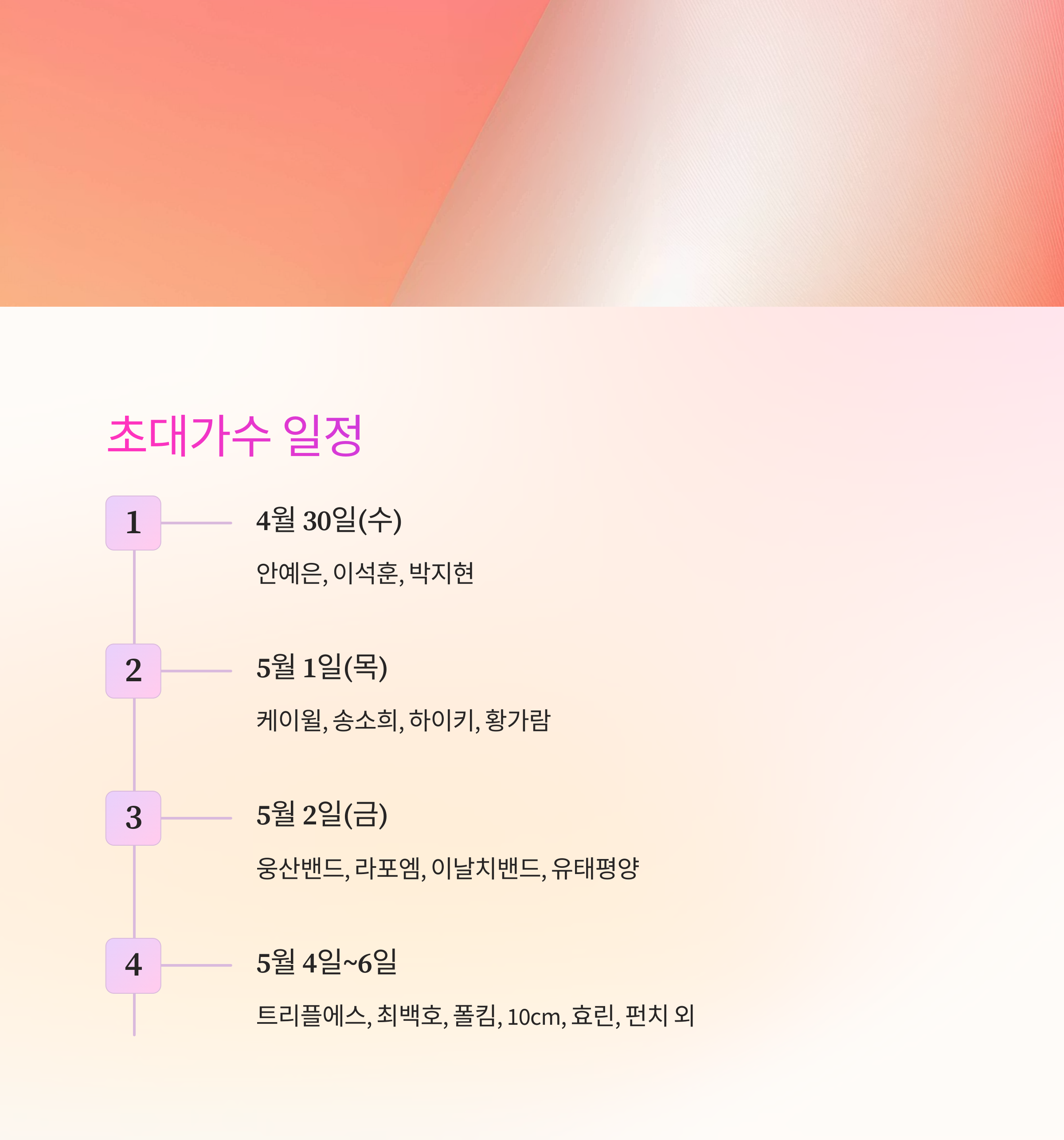 ※ 5월 3일(토) 공연은 현재까지 미확정 상태이니, 공식 홈페이지를 통해 최신 정보를 확인하시는 게 좋아요. 실시간 업데이트가 이루어지므로 축제 전후로 자주 체크해보는 걸 추천해요!