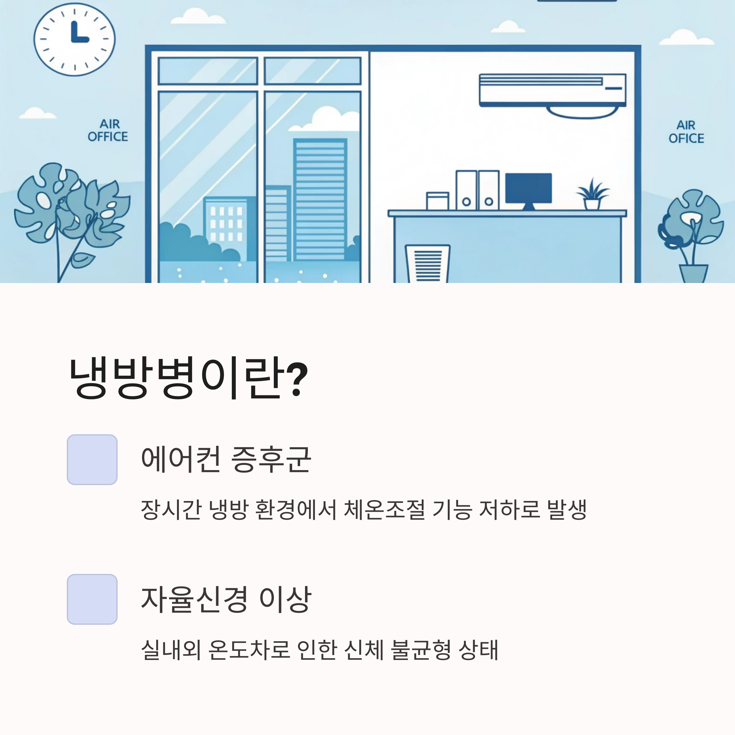 여름철 냉방기기의 사용이 늘어나면서 누구나 한 번쯤 겪게 되는 것이 바로 냉방병이에요. 흔히 가벼운 감기 정도로 여겨지지만, 실제로는 다양한 증상으로 일상생활에 불편함을 주기도 해요.