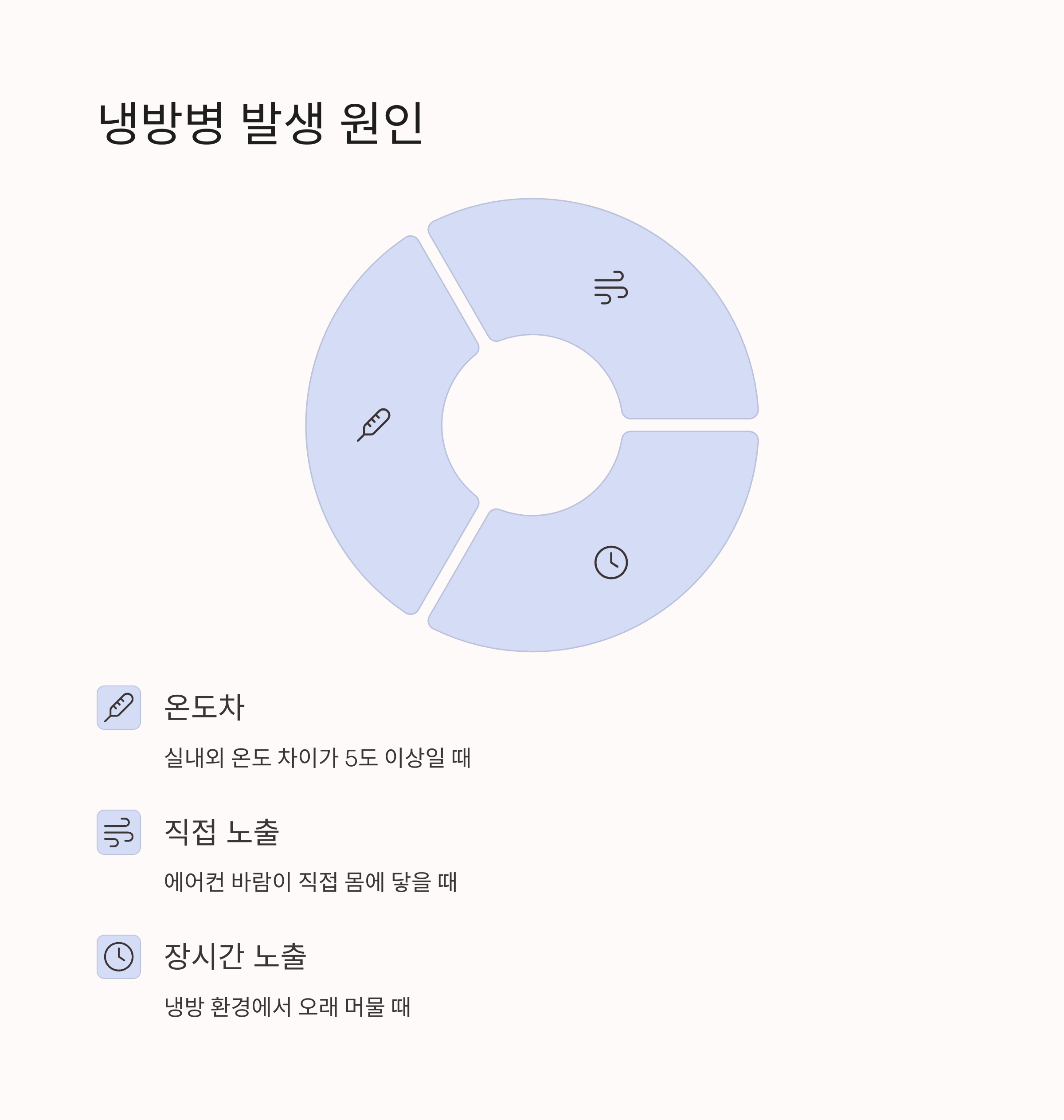 냉방병은 단순히 "에어컨 바람을 많이 쐬어서 생기는 병"이라고 생각하면 안 돼요. 보다 근본적인 원인은 ‘온도 변화에 대한 신체 적응 실패’라고 할 수 있어요. 즉, 실내외 온도 차가 클수록 우리 몸의 자율신경계가 이를 빠르게 따라가지 못하면서 다양한 증상이 나타나는 거예요.