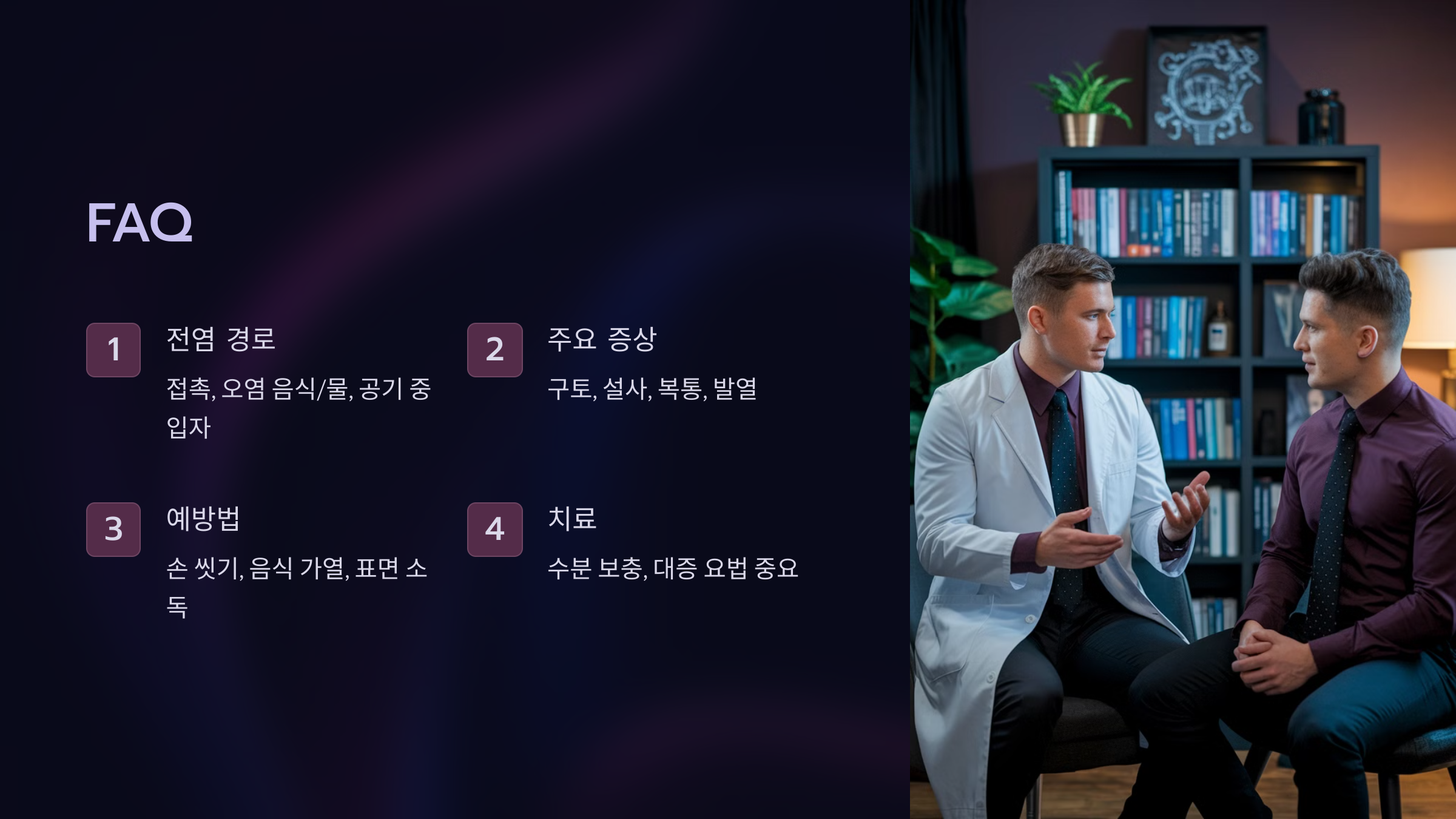 이외에도 의료진이나 식품 산업에 종사하는 사람들은 바이러스에 노출될 위험이 높아요. 이들은 감염될 경우 다수에게 전염시킬 가능성이 있기 때문에 개인 위생과 예방 수칙을 철저히 지켜야 해요.