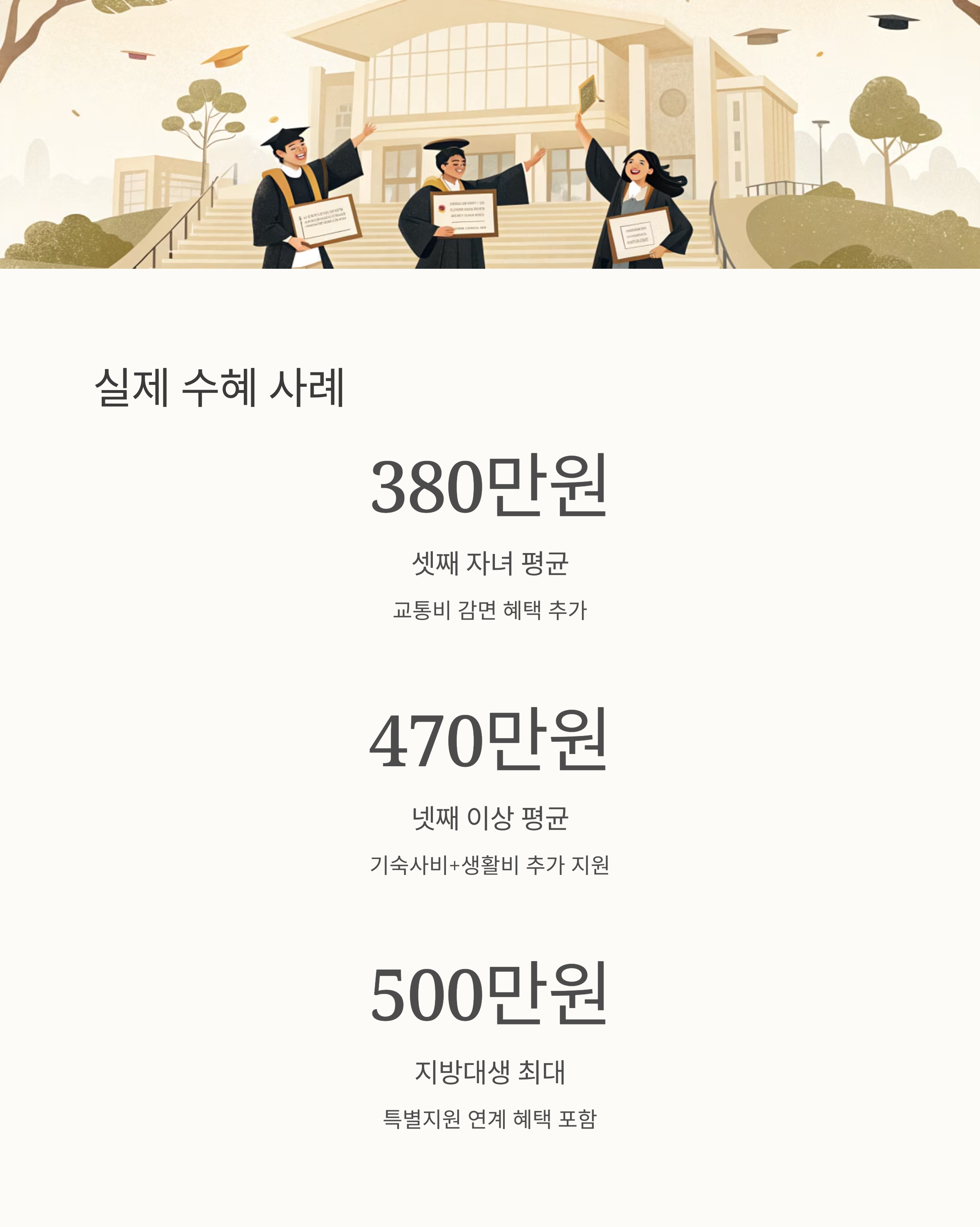 | 넷째 이상 | 470만 원 | 기숙사비 + 생활비 |