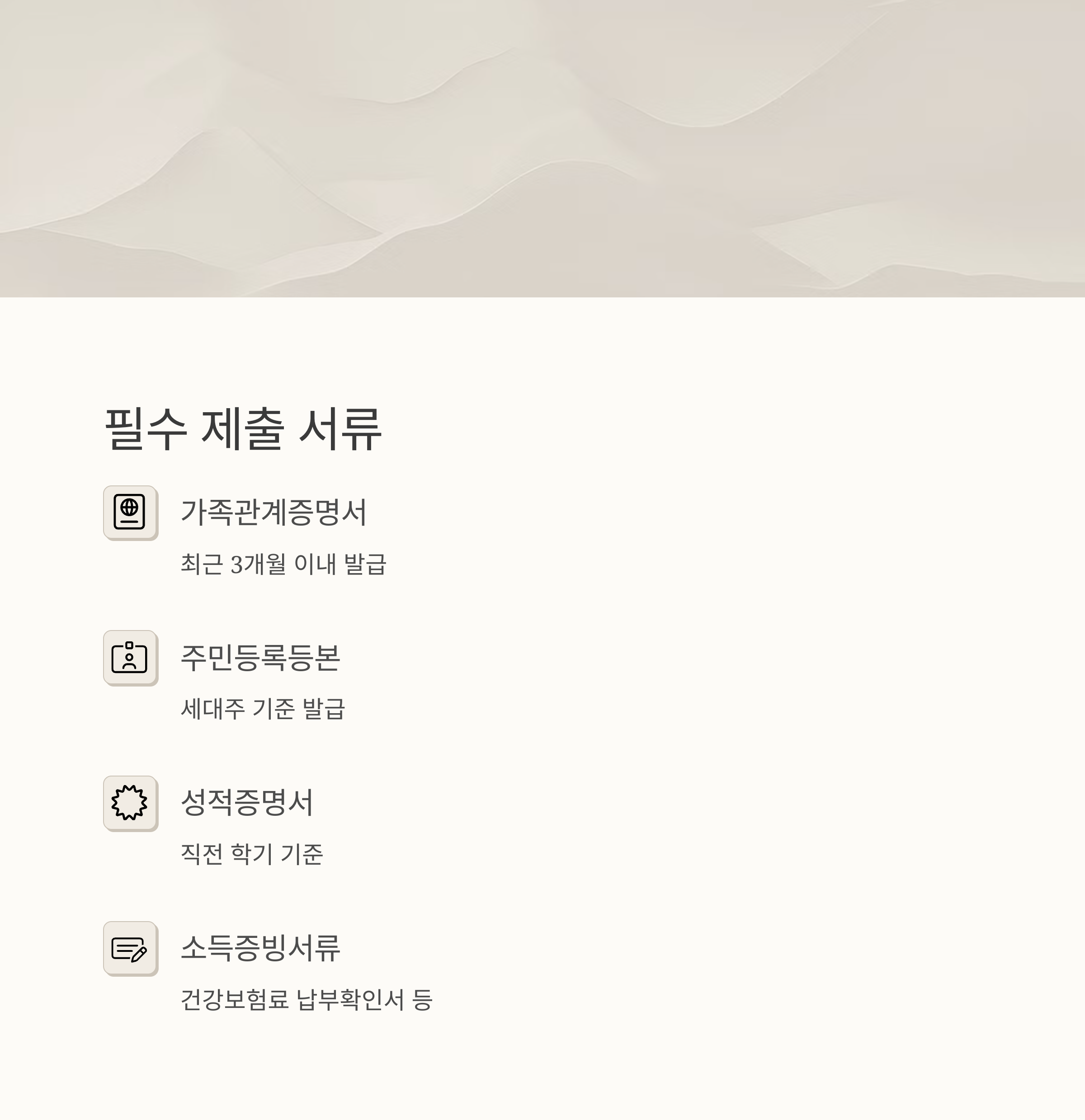 제출할 서류는 미리 준비해두면 좋아요. 특히 성적증명서나 건강보험료 납부확인서는 온라인으로도 발급 가능하니 활용해보세요!
