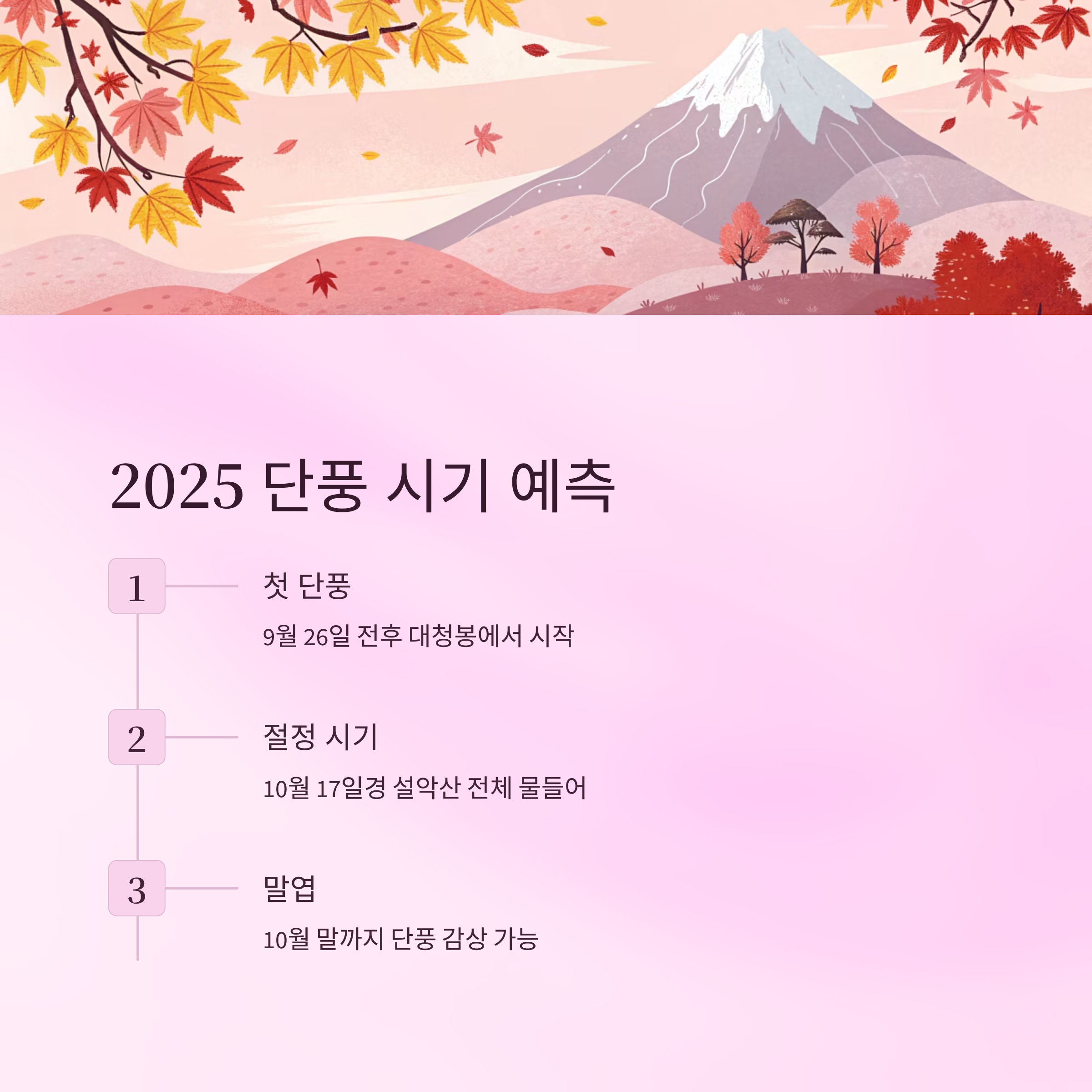 ※ 본 글의 내용은 2025년 기준 예측 정보에 기반하며, 실제 기상 상황에 따라 달라질 수 있어요. 정확한 일정은 기상청 및 국립공원공단 공식 사이트를 참고해주세요.