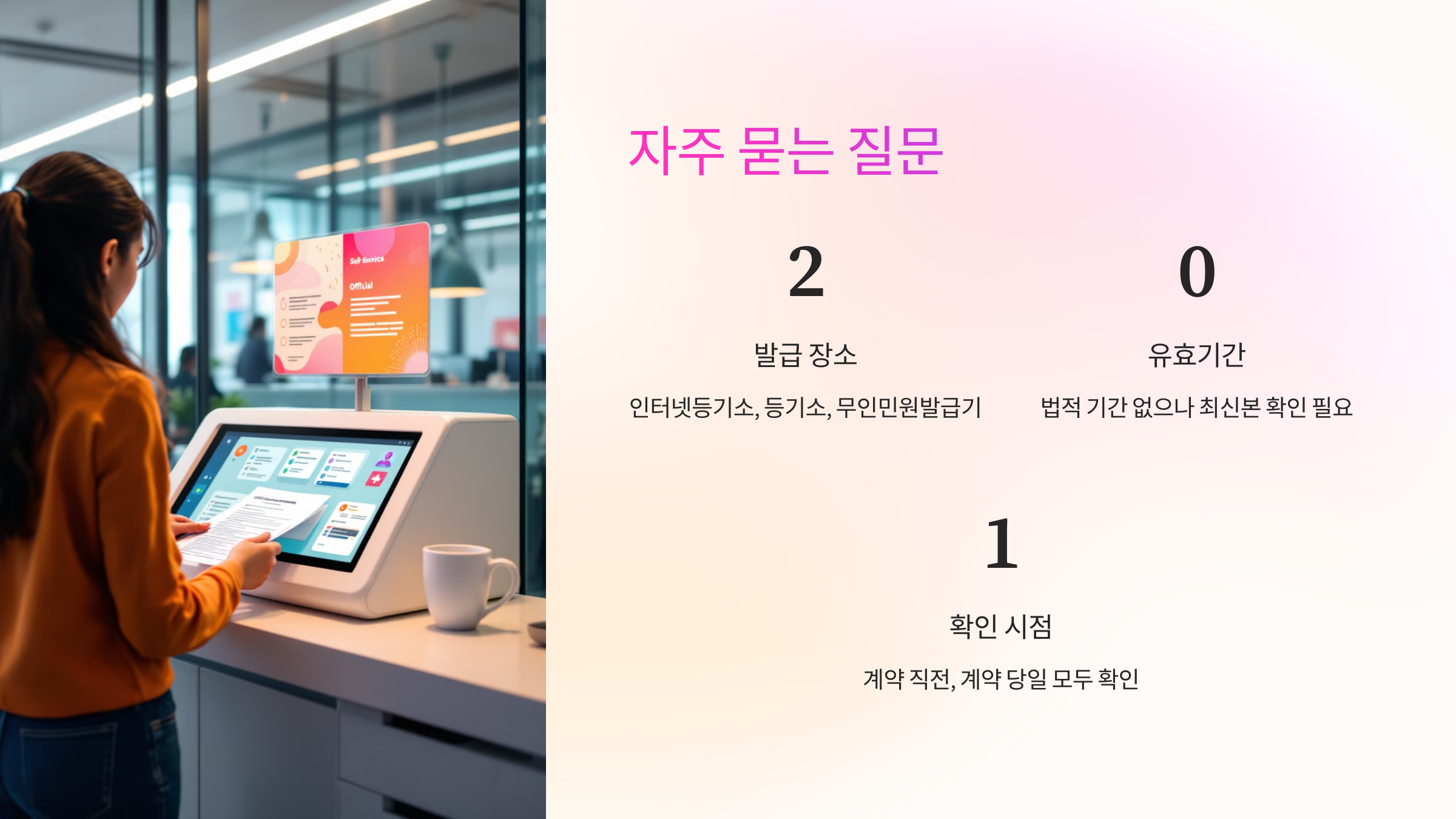 A2. 인터넷등기소 홈페이지나 가까운 등기소, 무인민원발급기에서 발급이 가능해요.