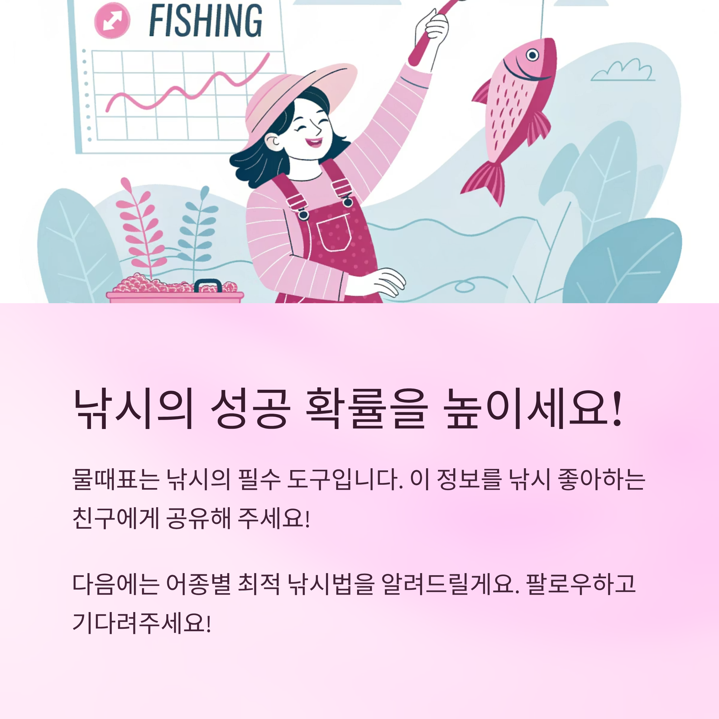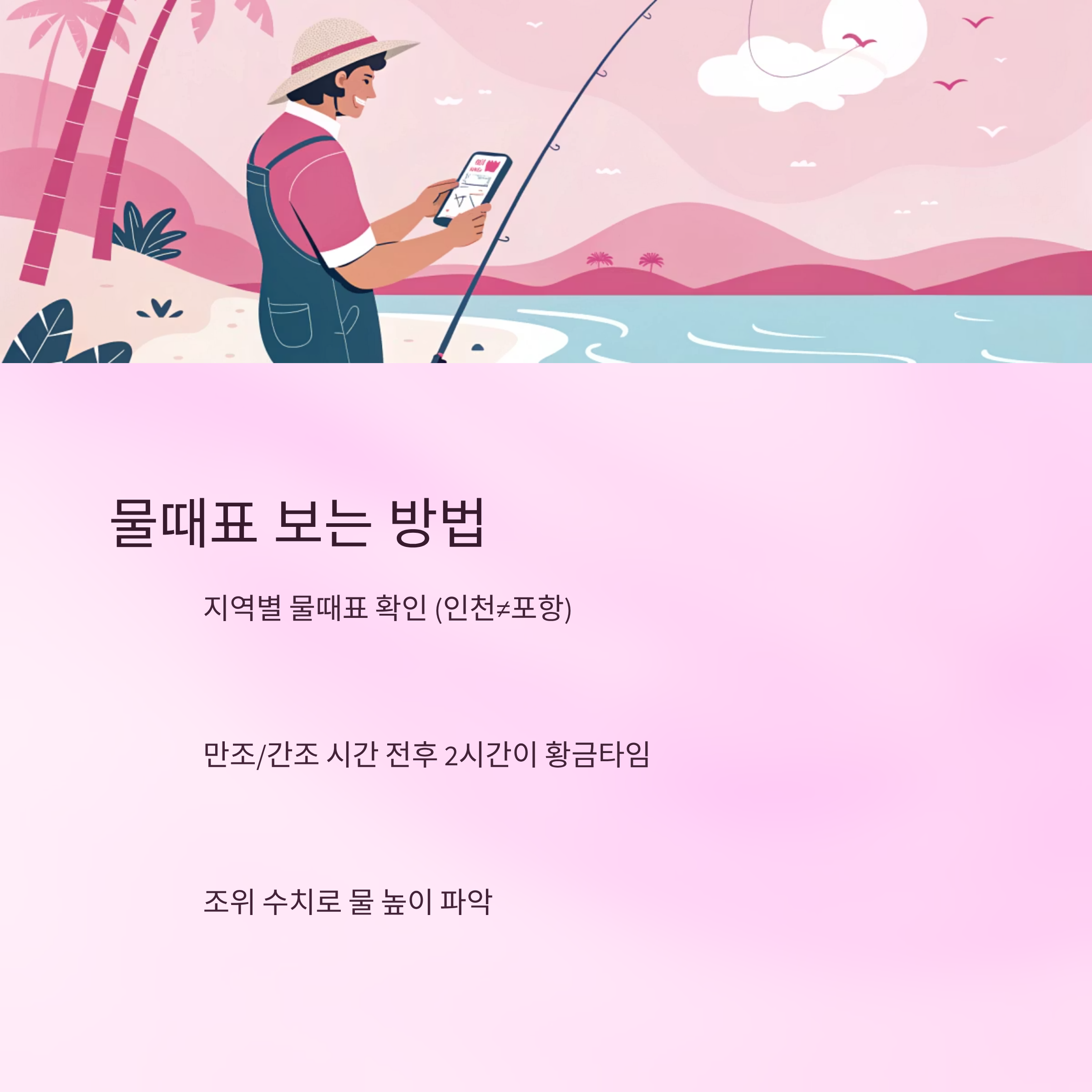 📌 본 콘텐츠는 낚시 정보 제공 목적이며, 실제 상황에 따라 다를 수 있어요. 물때나 날씨 등의 변수는 수시로 변동될 수 있으니 반드시 현장 상황을 확인하고 안전을 최우선으로 낚시하시길 바랍니다.