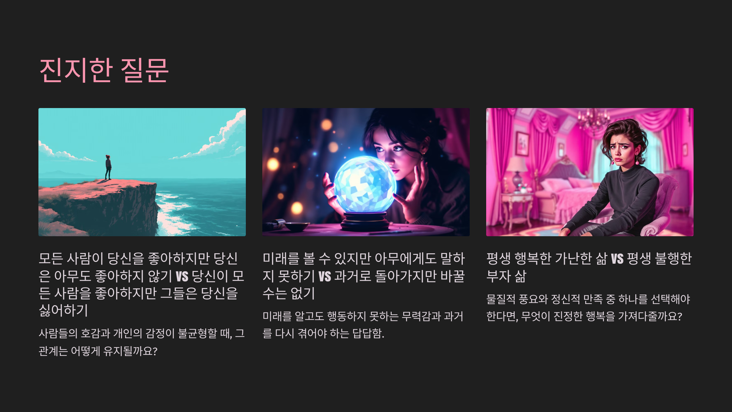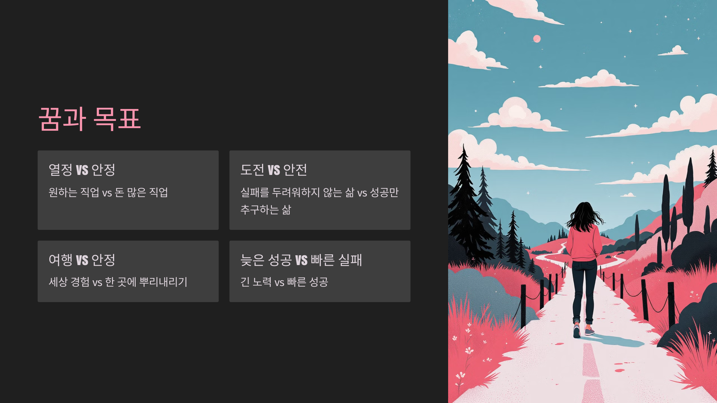 - 안정과 도전 사이에서, 당신의 삶은 어떤 선택을 요구할까요?
