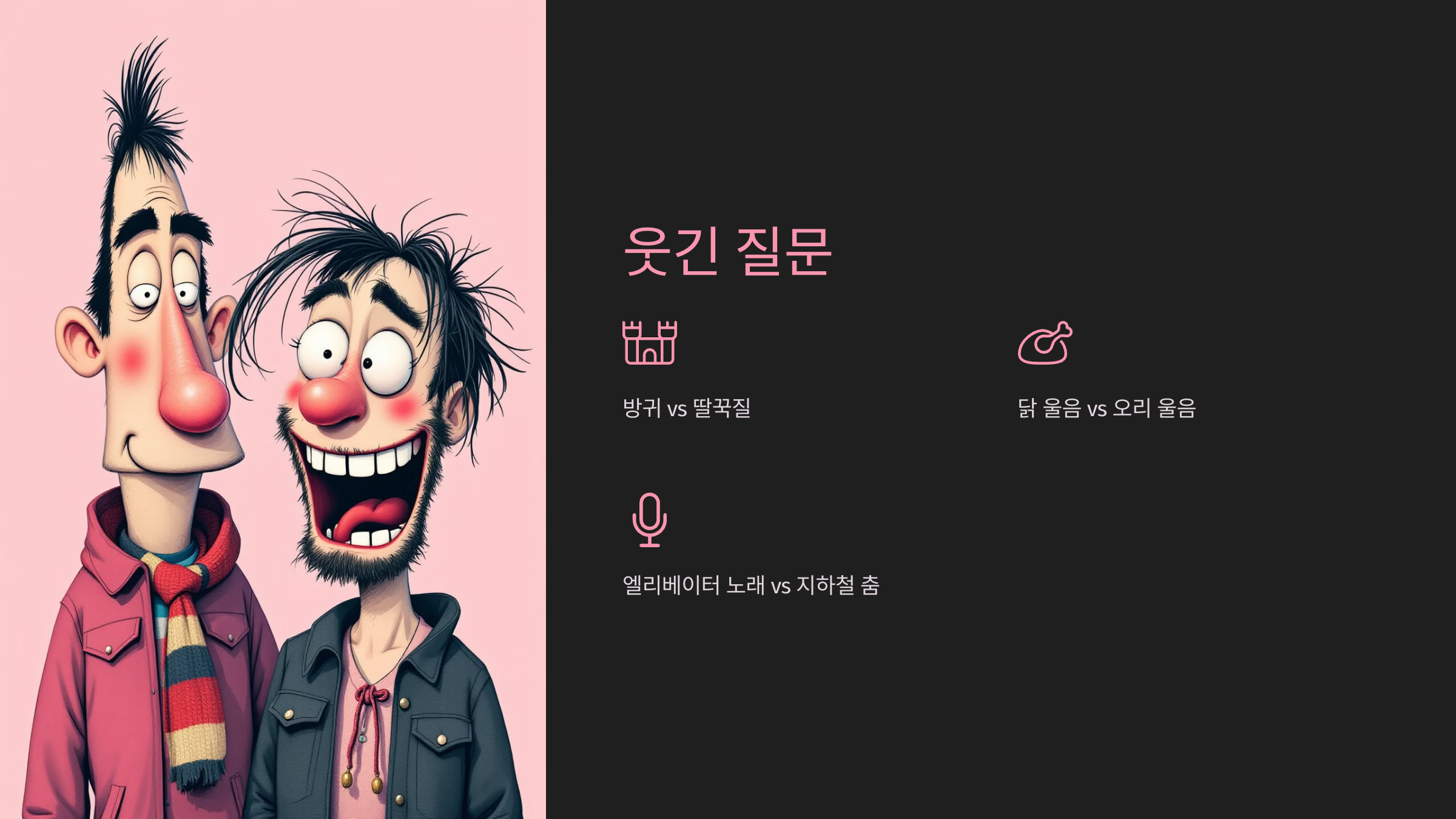 밸런스 게임은 단순한 두 가지 선택지 중 하나를 고르는 게임이지만, 그 단순함 속에는 복잡한 고민과 재미가 숨어 있습니다. 이 게임은 때로는 웃음을, 때로는 진지한 생각을 유발하며, 친구, 가족, 연인과의 대화와 소통을 풍성하게 만들어 줍니다. 여기에는 웃긴 질문, 진지한 질문, 연애와 꿈에 관한 질문까지 다양한 주제가 준비되어 있습니다. 각각의 질문은 다각도로 고민하게 하고, 각자의 가치관을 엿볼 수 있는 기회를 제공합니다.