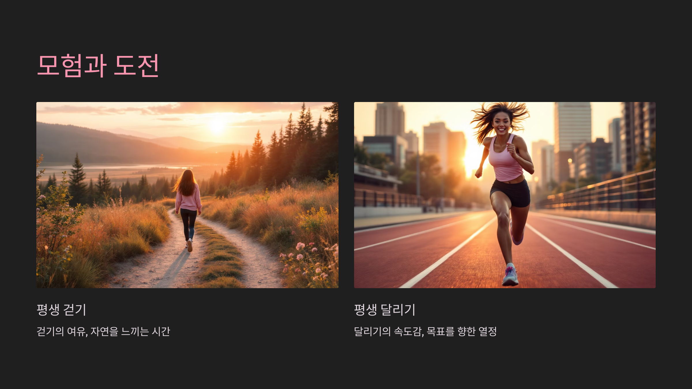- 걷기의 여유와 달리기의 속도감 중, 평생 하나의 움직임만 선택해야 한다면 어떤 것이 더 견디기 쉬울까요?