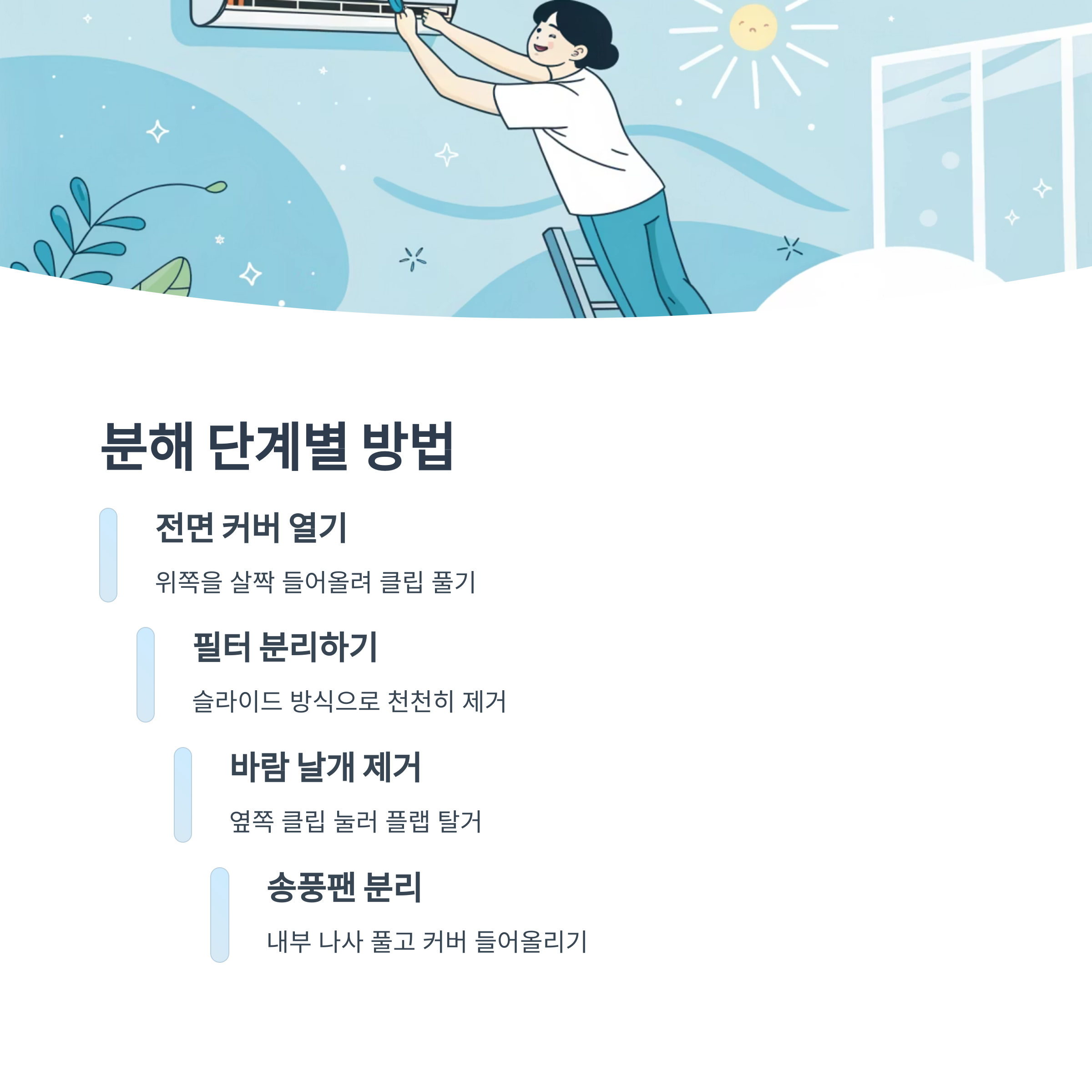 이제 도구를 다 챙겼다면 실제 분해 작업을 시작해볼 수 있어요. 다음 장에서는 벽걸이 에어컨을 단계별로 안전하게 분해하는 방법을 알려드릴게요.