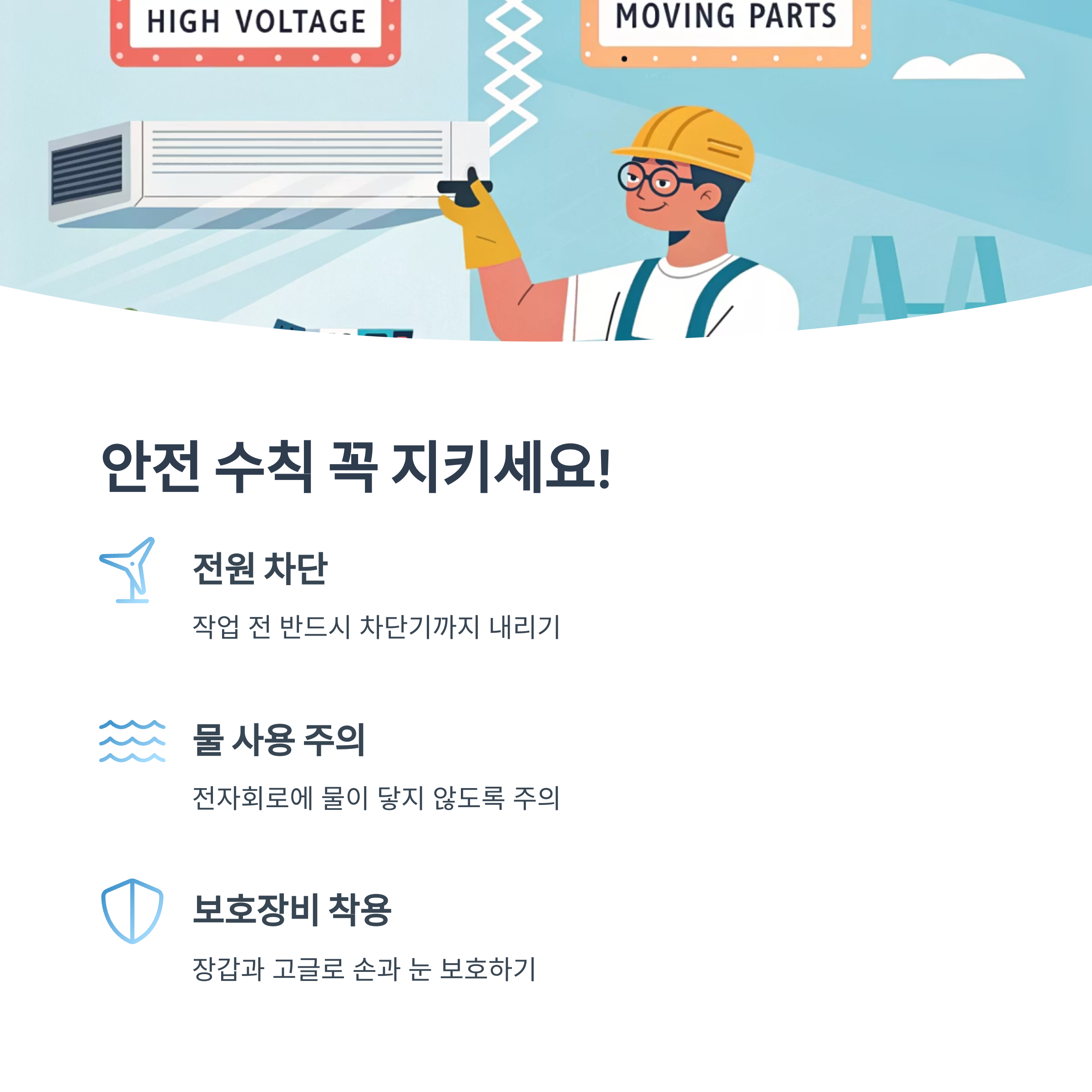 작업 전 장갑과 고글 같은 기본적인 보호장비도 착용해 주세요. 특히 필터나 날개를 분해할 때 손에 상처가 나기 쉬운데, 장갑 하나만으로도 큰 차이가 난답니다.