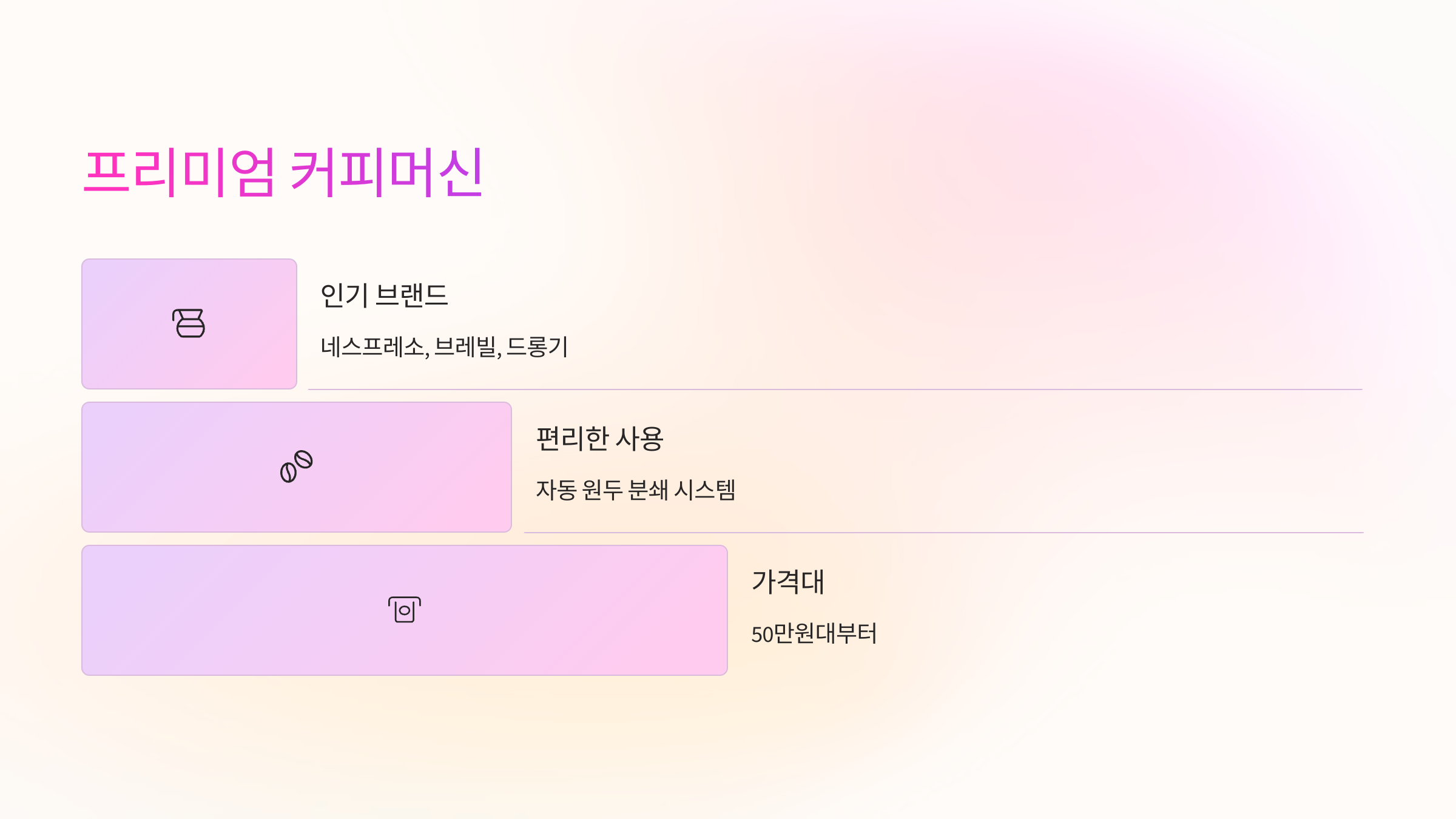 커피를 좋아하는 부모님이라면 프리미엄 커피머신도 좋은 선택이에요. 네스프레소, 브레빌, 드롱기 같은 브랜드 제품이 인기 많고, 자동으로 원두를 갈아 바로 내려주기 때문에 사용이 정말 편해요.