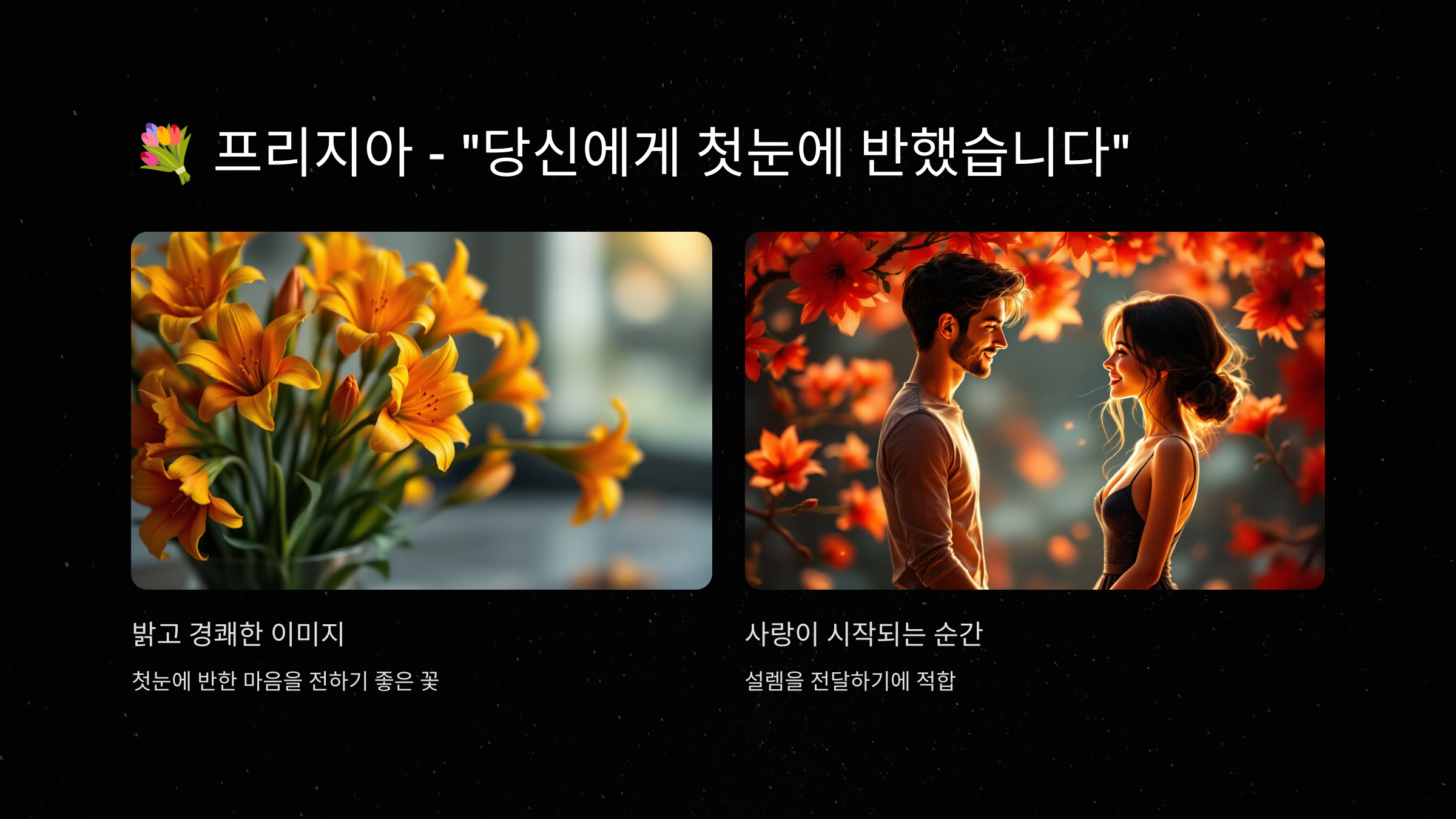 각 꽃에는 특별한 의미가 담겨 있어, 사랑을 고백하기에 좋은 꽃말을 통해 당신의 진심을 전해보세요.