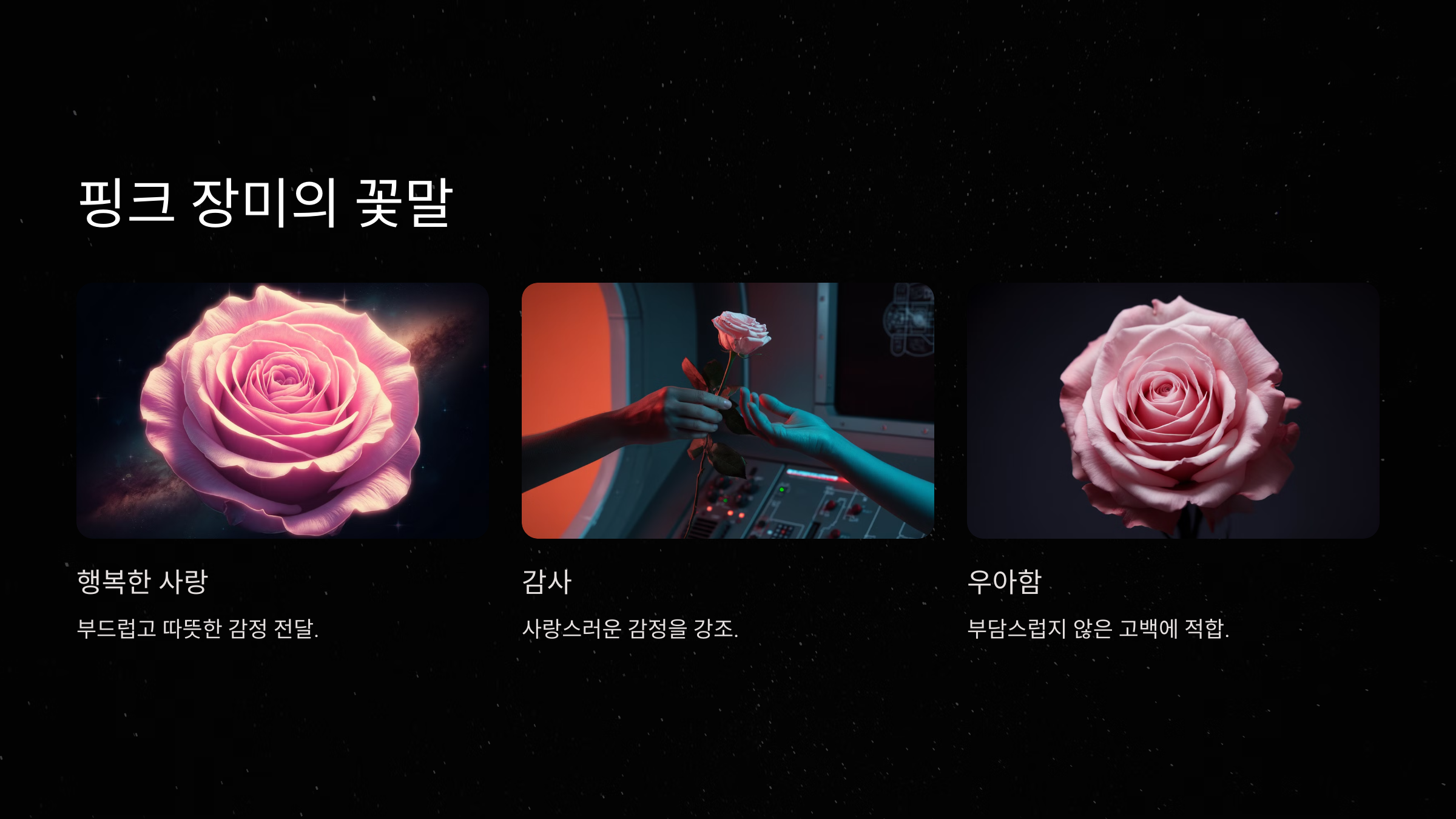사랑을 표현하면서도 부드럽고 따뜻한 감정을 전달할 수 있어 부담스럽지 않은 고백에 잘 어울립니다.