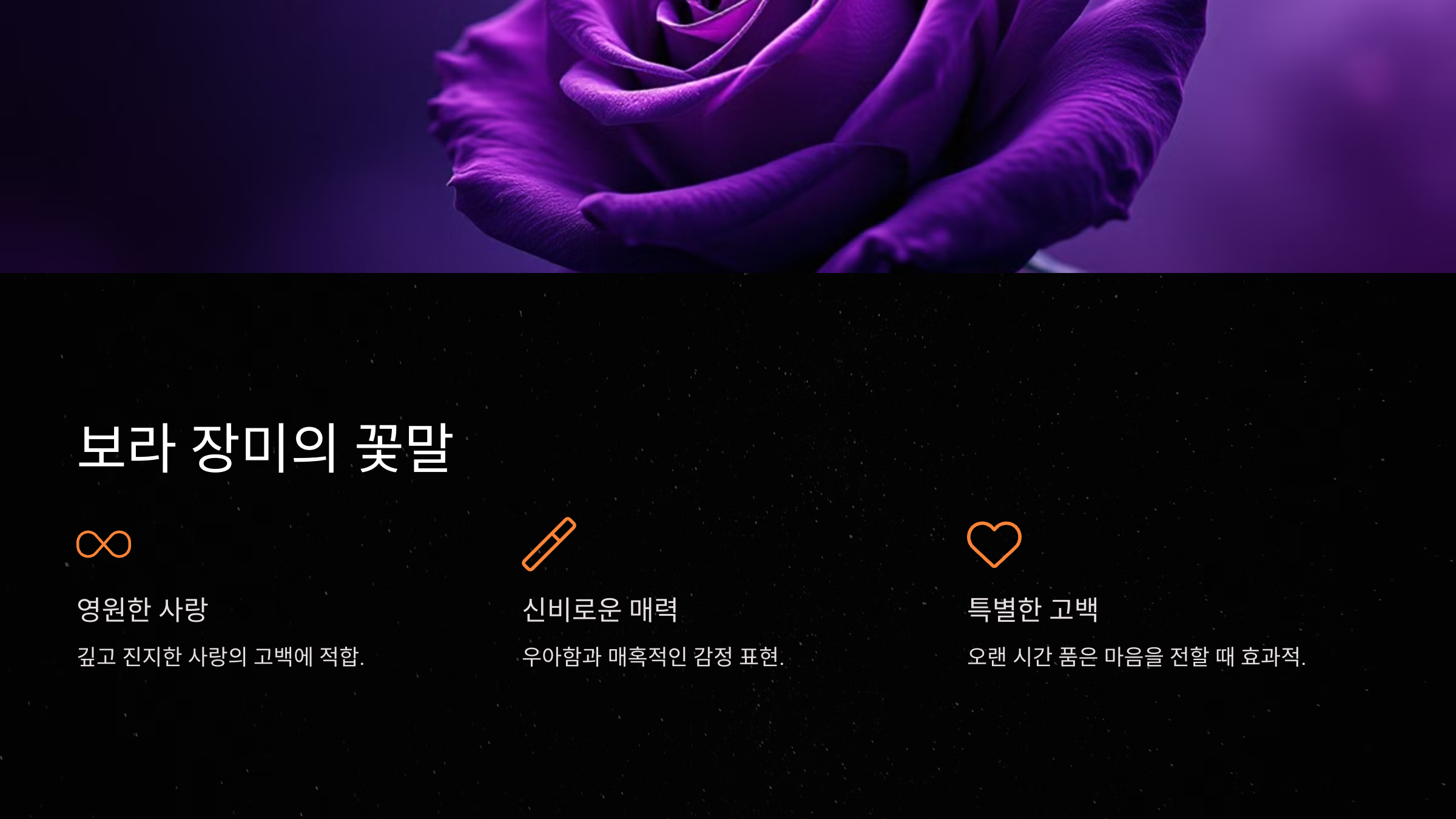 보라색 장미는 영원한 사랑과 매혹적인 감정을 담고 있어 특별한 고백의 순간에 잘 어울립니다.