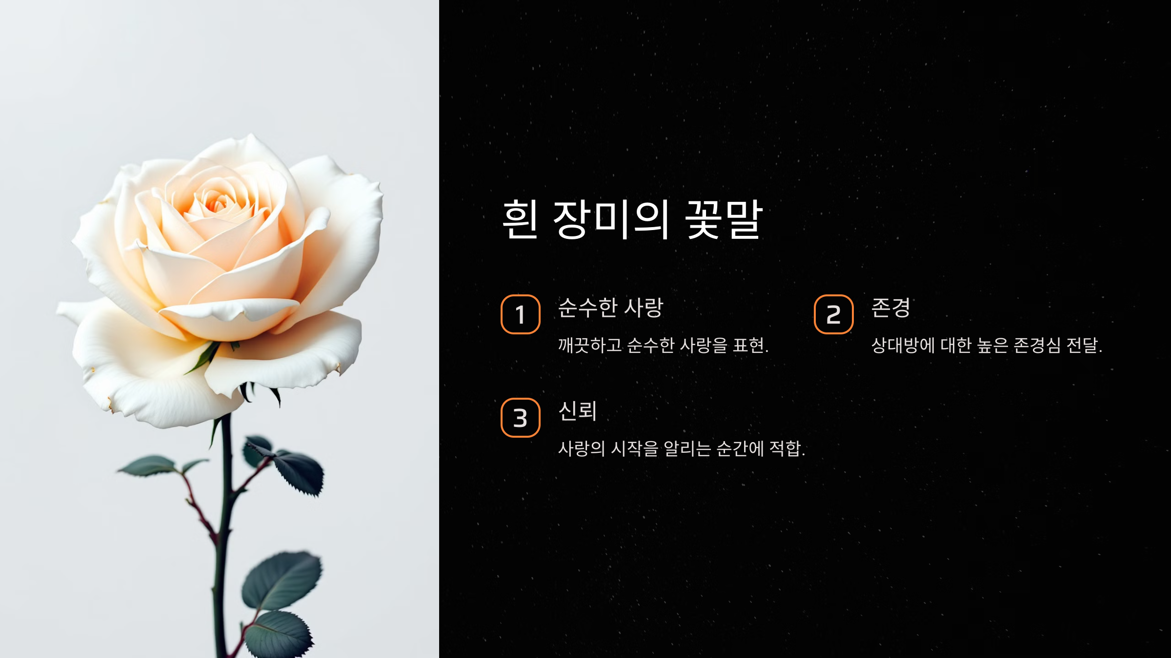 흰 장미는 순수한 사랑과 존경을 상징합니다.