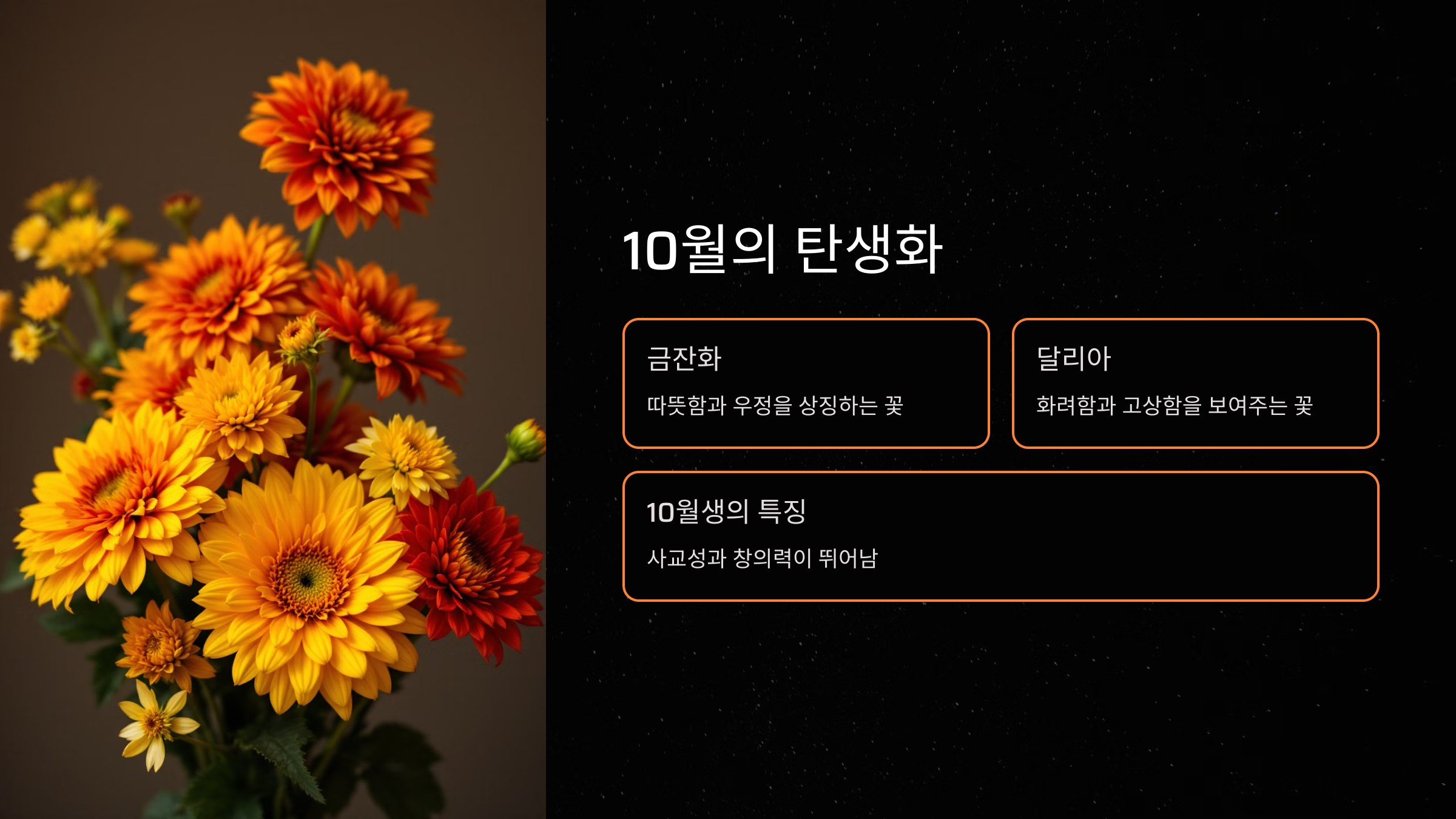 10월생의 특징: 사교성이 뛰어나며, 주변 사람들에게 영감을 주는 창의력이 강합니다.