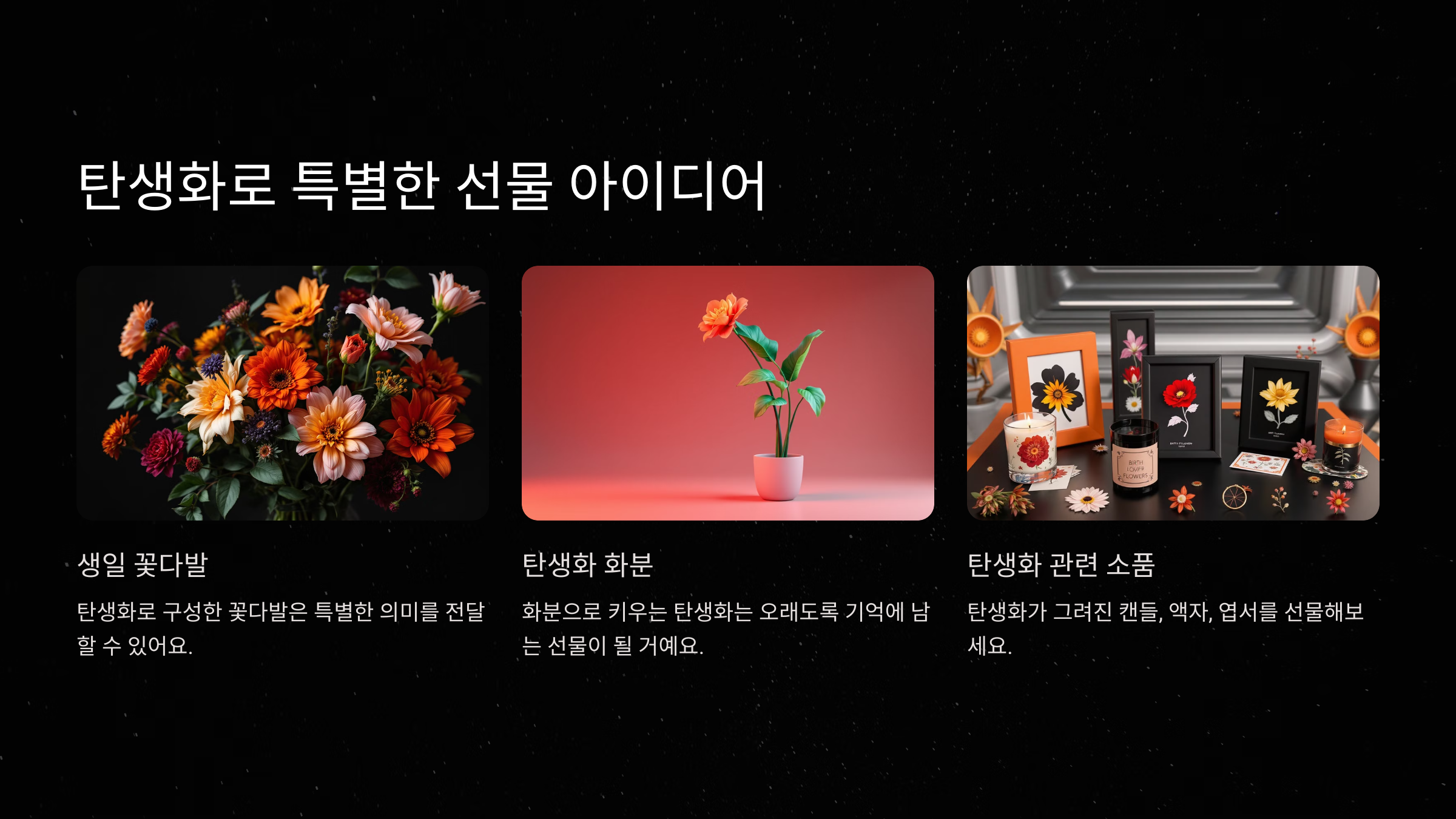 - 탄생화 화분: 화분으로 키우는 탄생화는 오래도록 기억에 남는 선물이 될 거예요.