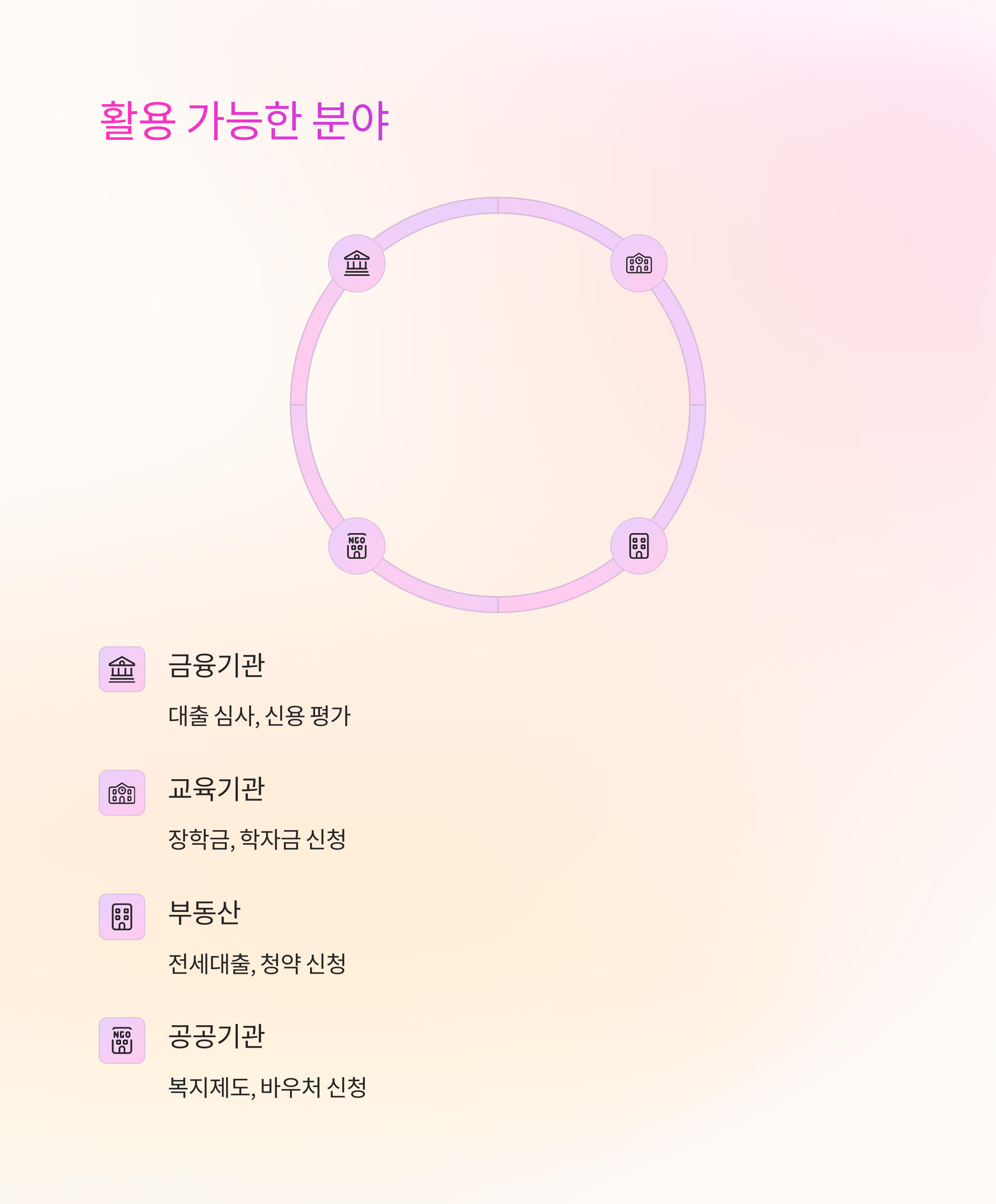 | 공공기관 | 사회보장 신청, 서류 검증 |