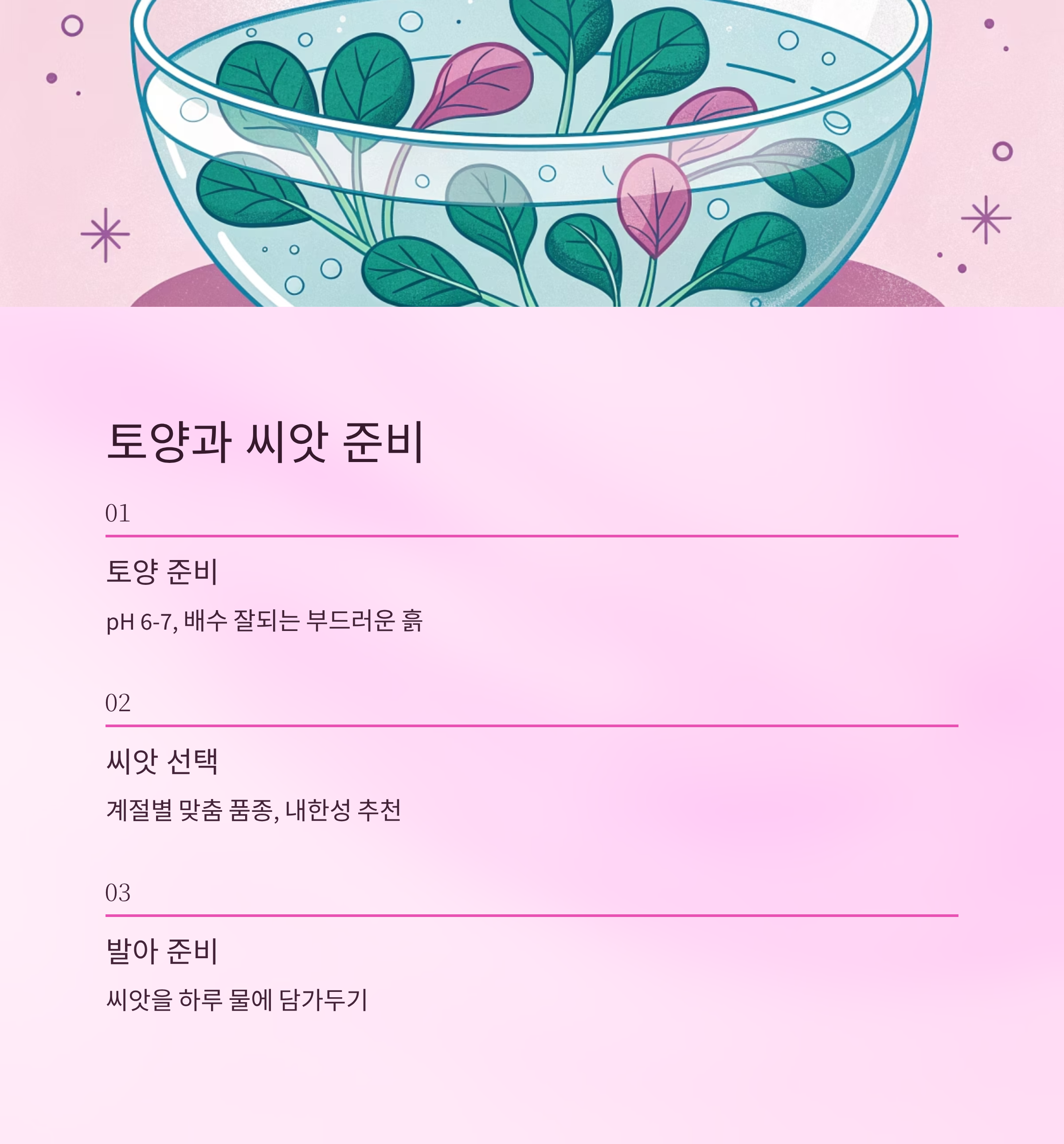 | 초기 관리 | 발아 전후 자주 확인 | 건조하면 발아 실패 |