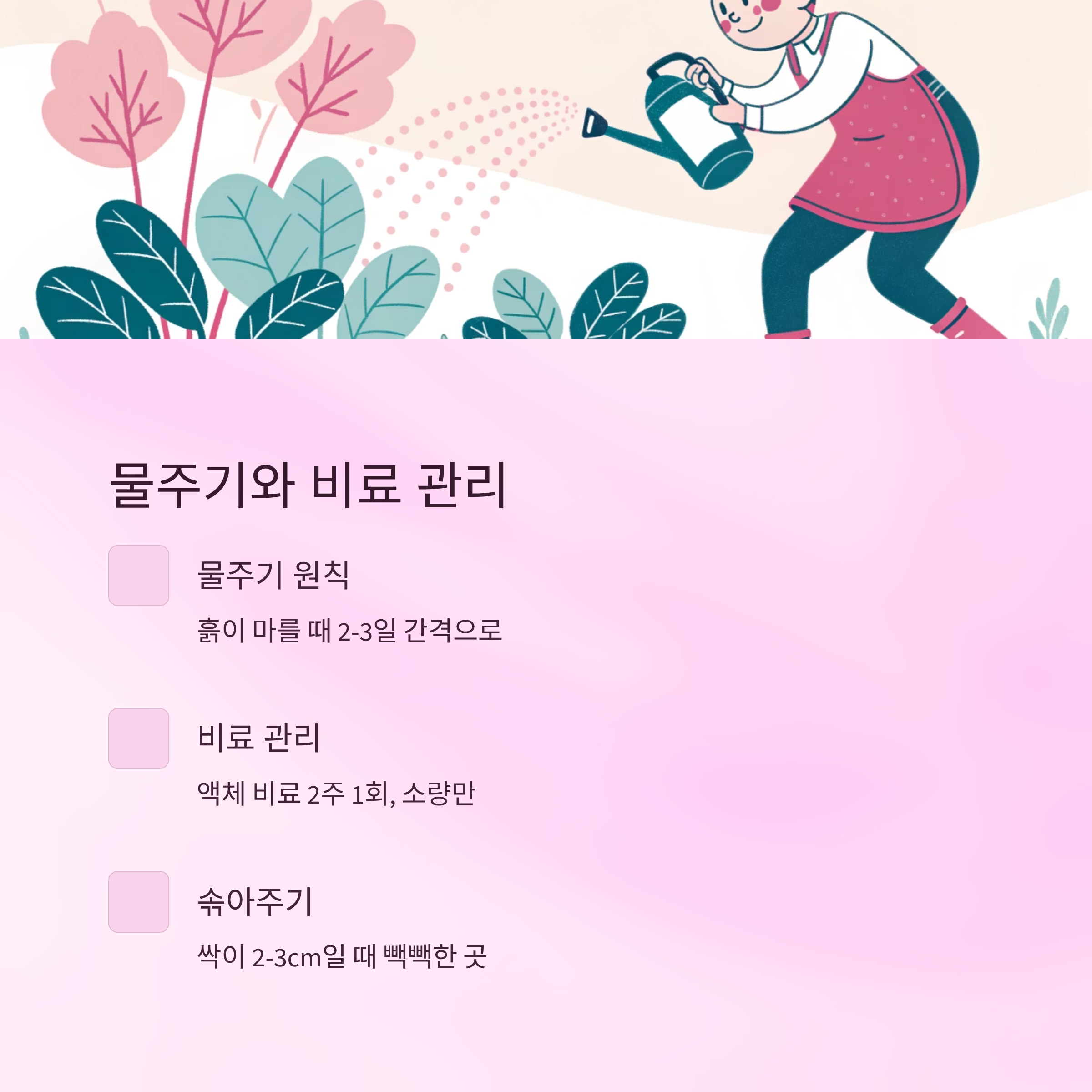 물주기와 비료 관리 💧