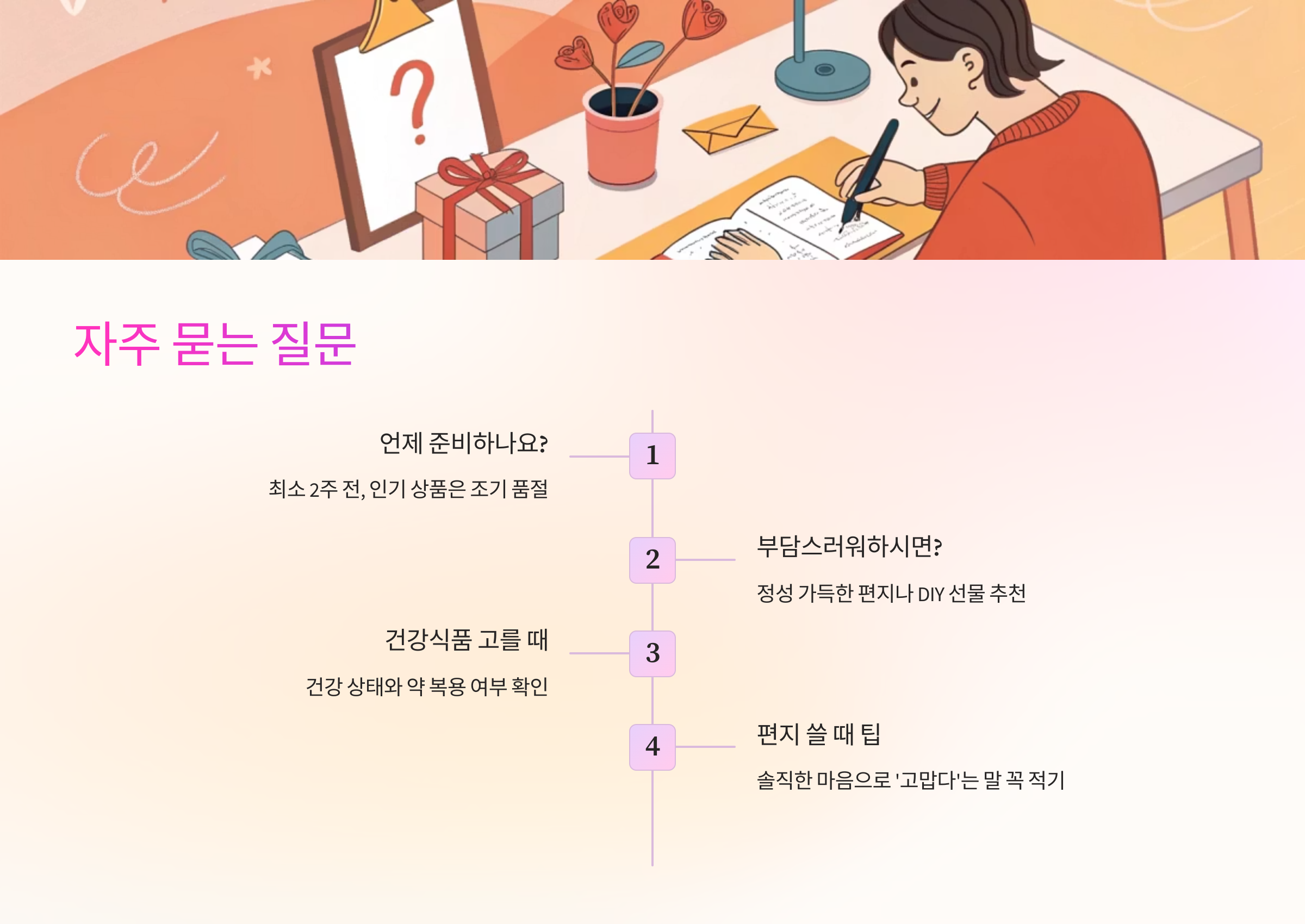 A2. 값비싼 선물보다 정성 가득한 편지나 DIY 선물이 좋아요.
