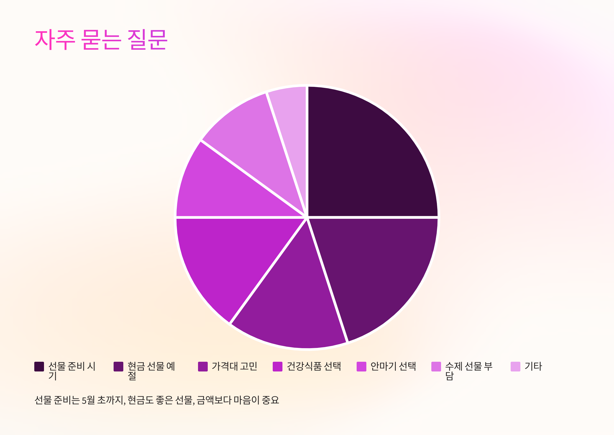 A3. 전혀 그렇지 않아요! 진심이 담긴 손편지, 수제 간식, 직접 고른 소품 등도 충분히 감동을 줄 수 있어요. 금액보다 마음이 중요한 날이니까요.