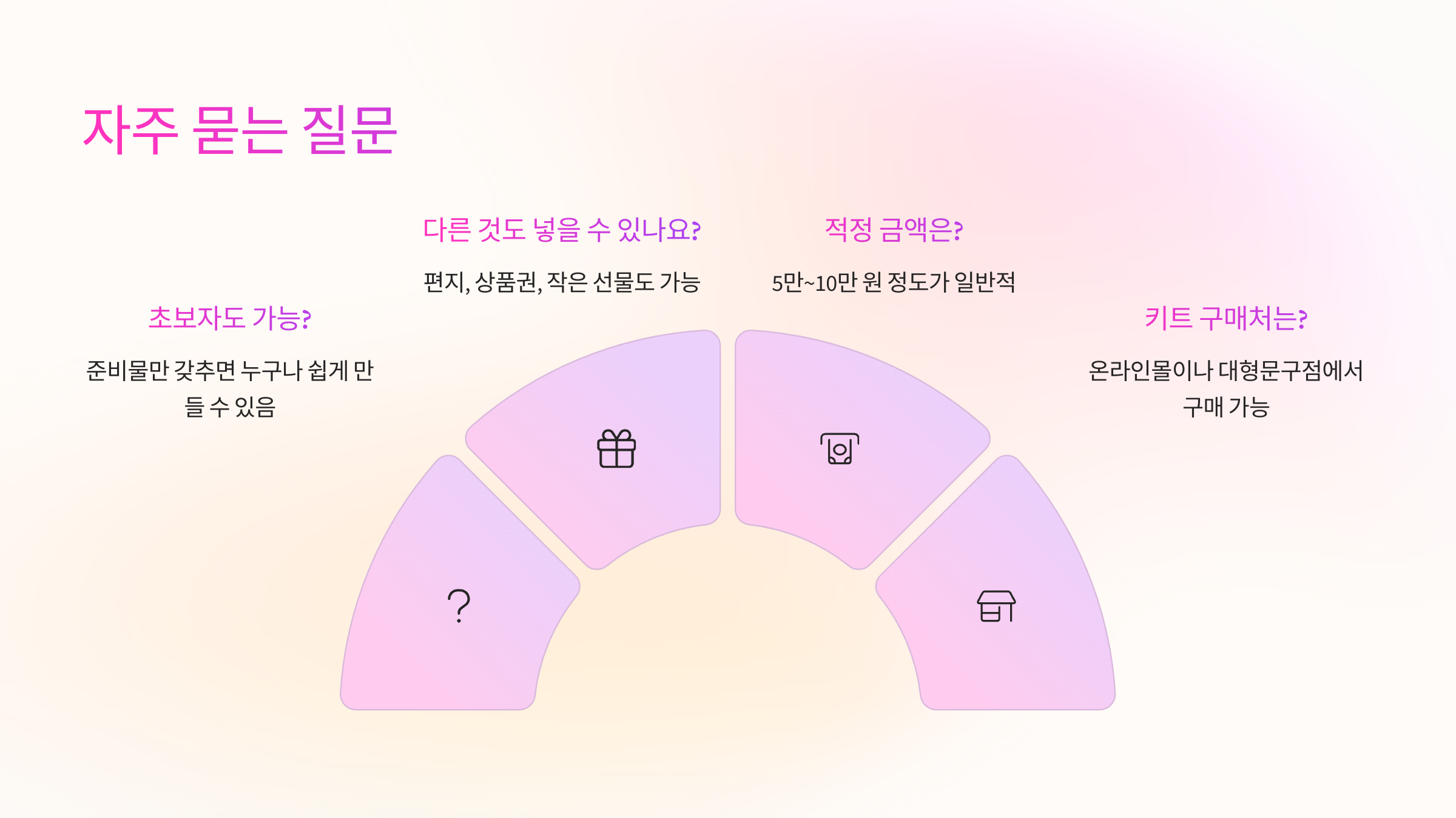 요즘은 다양한 '용돈박스 DIY 키트'가 나와 있어서 초보자도 쉽게 만들 수 있답니다. 구매해서 조금만 꾸며주면 완성도가 훨씬 높아져요!