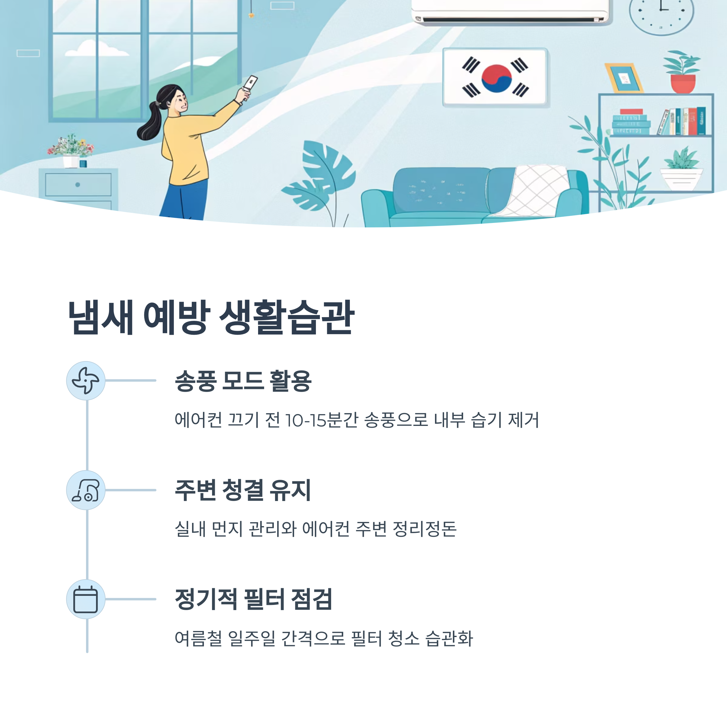 필터 외에도 흡입구와 송풍구 주변 먼지를 주기적으로 닦아주면 훨씬 쾌적한 냄새 없는 냉방이 가능해요. 간단해 보여도 꾸준한 청소가 정말 중요해요!
