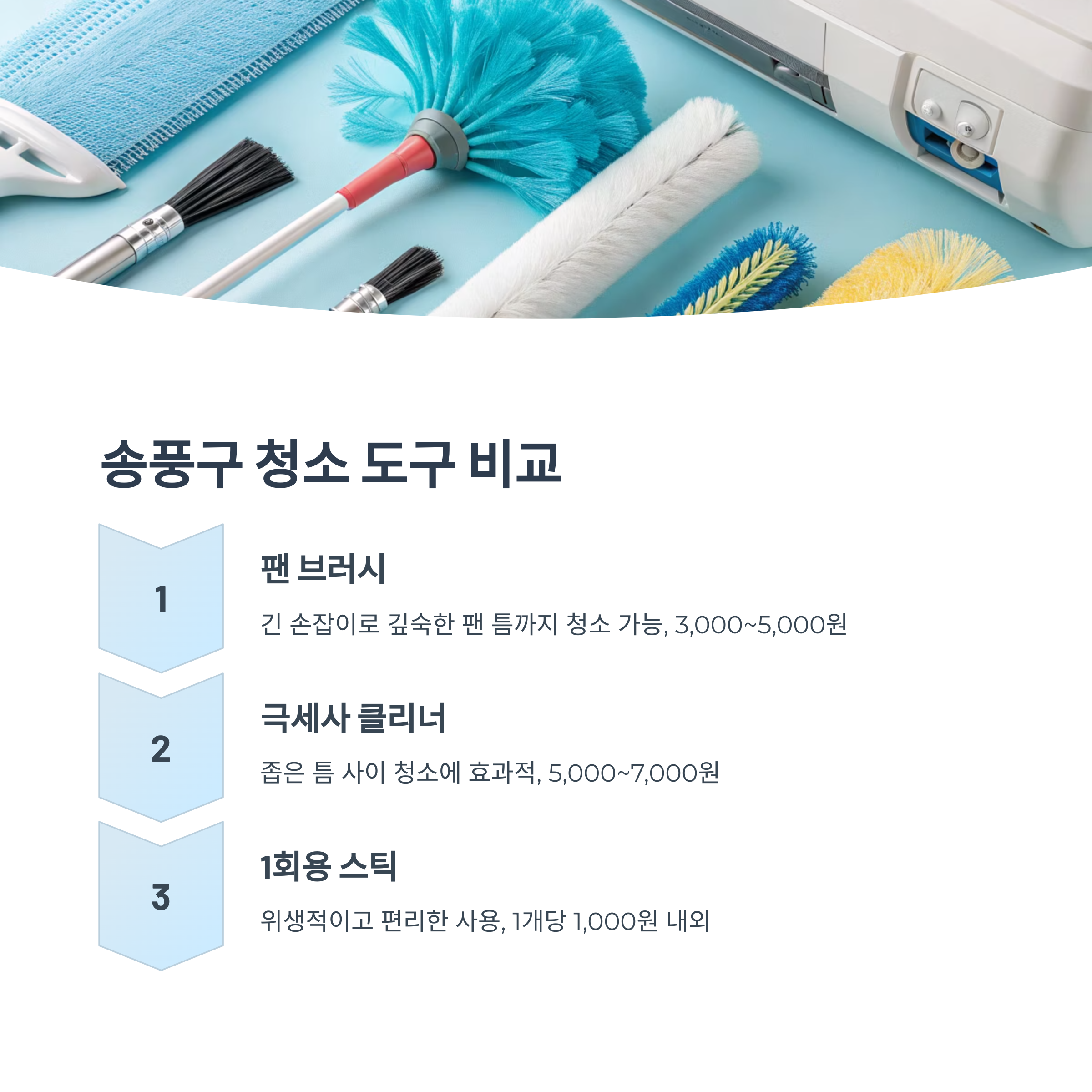 | 극세사 클리너 | 봉 타입 | 좁은 틈 전용 | 힘 조절 필요 | 5,000~7,000원 |