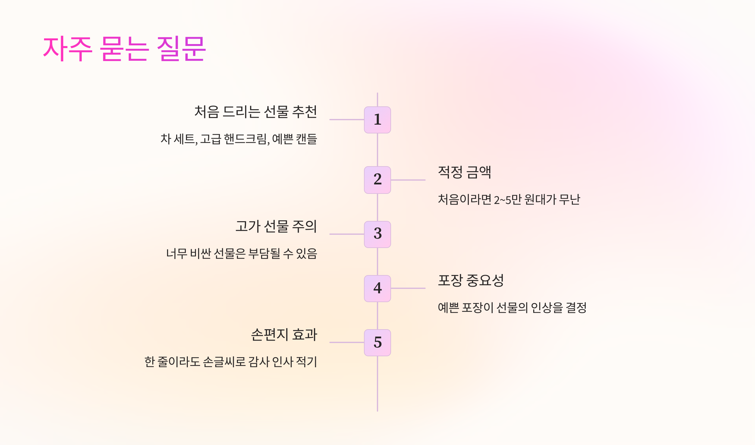 무엇보다 자연스럽고 겸손한 태도를 유지하는 것이 핵심이에요. 선물은 '나 잘났어요'가 아니라 '존중합니다'라는 메시지를 담아야 하니까요. 😊