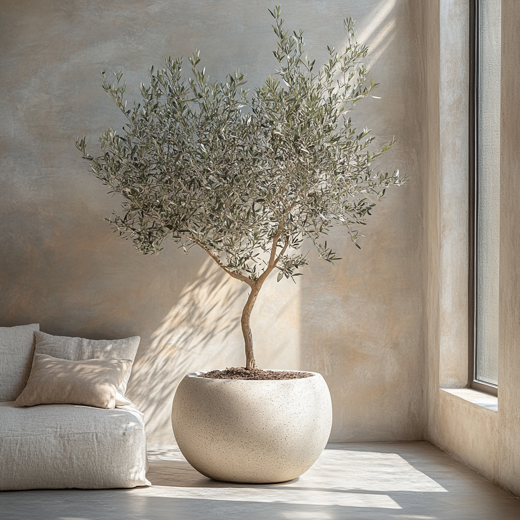 올리브나무는 건조하고 따뜻한 환경에 잘 적응하며, 수십 년 혹은 수백 년까지도 자랄 수 있는 강인한 생명력을 지닌 식물입니다. 작고 단단한 잎은 은빛을 띠어 시각적인 매력을 더하며, 인테리어 소품으로도 훌륭합니다. 열매는 오일 생산과 식용으로 활용되며, 다양한 요리에 풍미를 더합니다. 이 나무는 자연 상태에서 적응력이 뛰어나지만, 실내 환경에서는 적합한 조건을 만들어줘야 건강하게 자랄 수 있습니다.