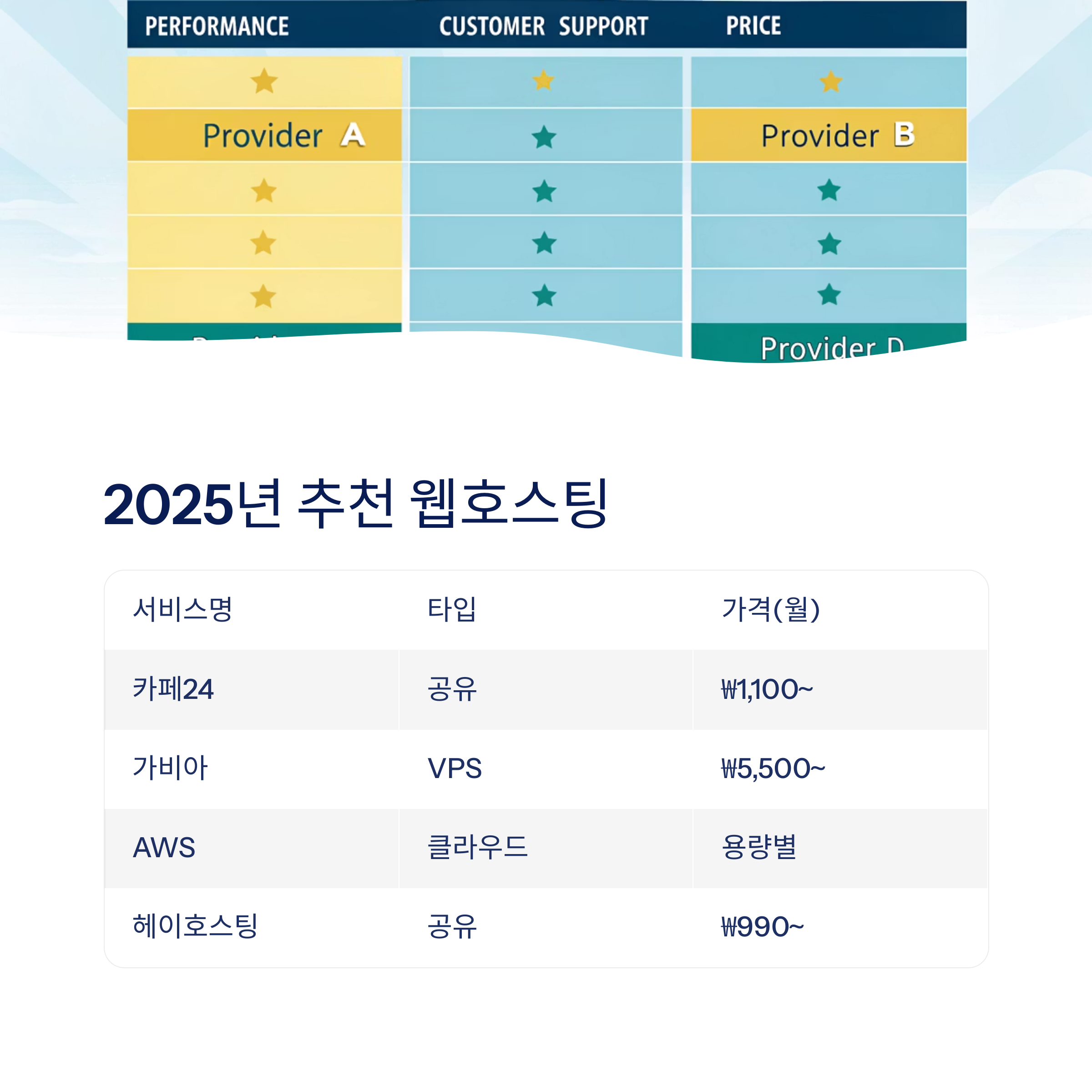 🖥️ 2025년 추천 웹호스팅 서비스 비교표