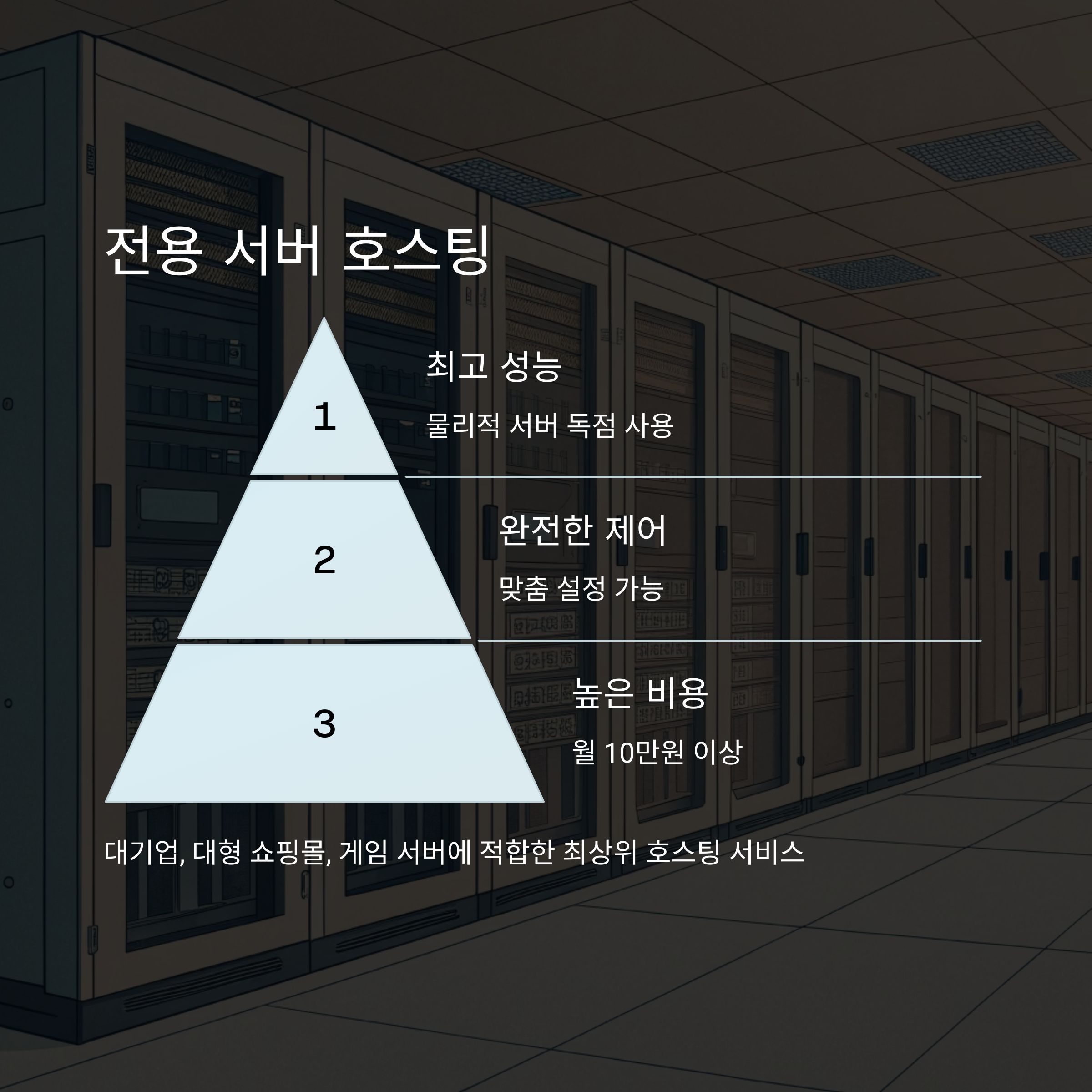 기술력이 있고 사이트 규모가 크다면 전용 서버는 가장 강력한 선택이에요. 대신 서버 유지보수에 시간과 노력이 필요하다는 점을 잊으면 안 돼요.