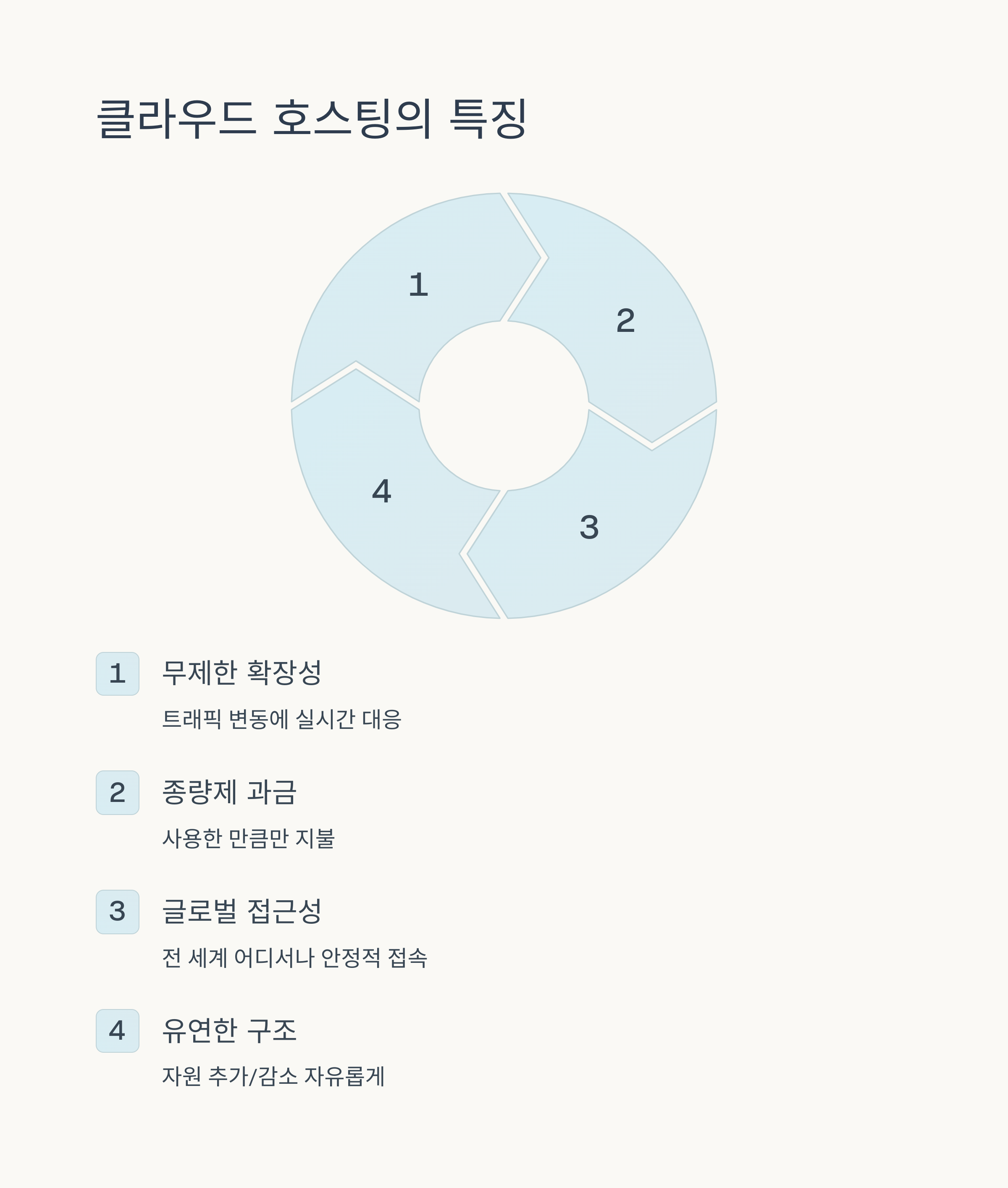 클라우드 호스팅은 여러 개의 가상 서버를 클러스터로 구성해, 언제든지 자원을 추가하거나 줄일 수 있는 유연한 구조를 가진 서비스예요. 요즘처럼 트래픽이 급변하는 환경에서는 클라우드 호스팅이 대세로 떠오르고 있어요.