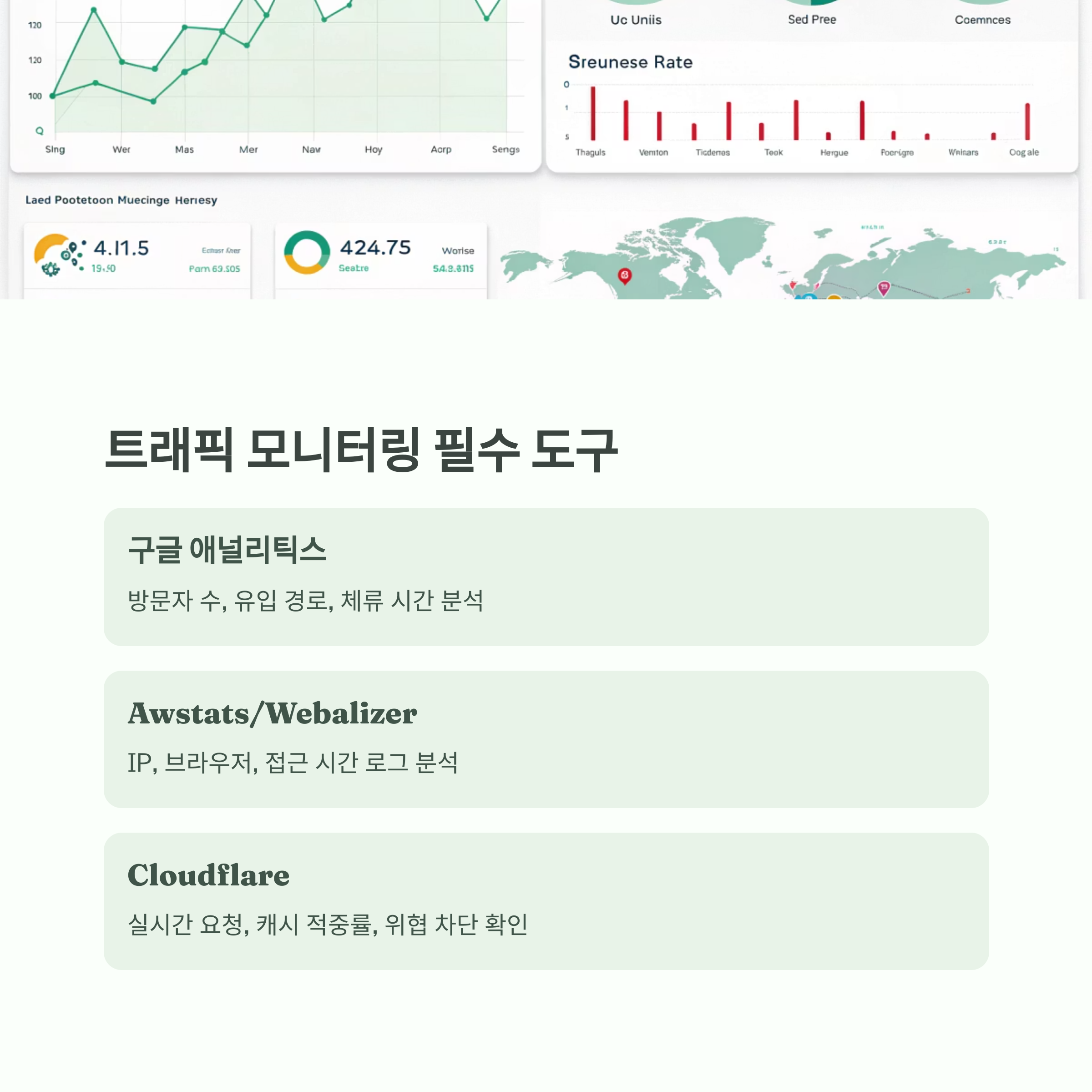 더 고급 분석을 원한다면 Cloudflare와 같은 CDN 서비스를 활용해보세요. 실시간 요청 수, 캐시 적중률, 위협 차단 내역까지 보여주니까, 보안과 성능을 동시에 관리할 수 있답니다.