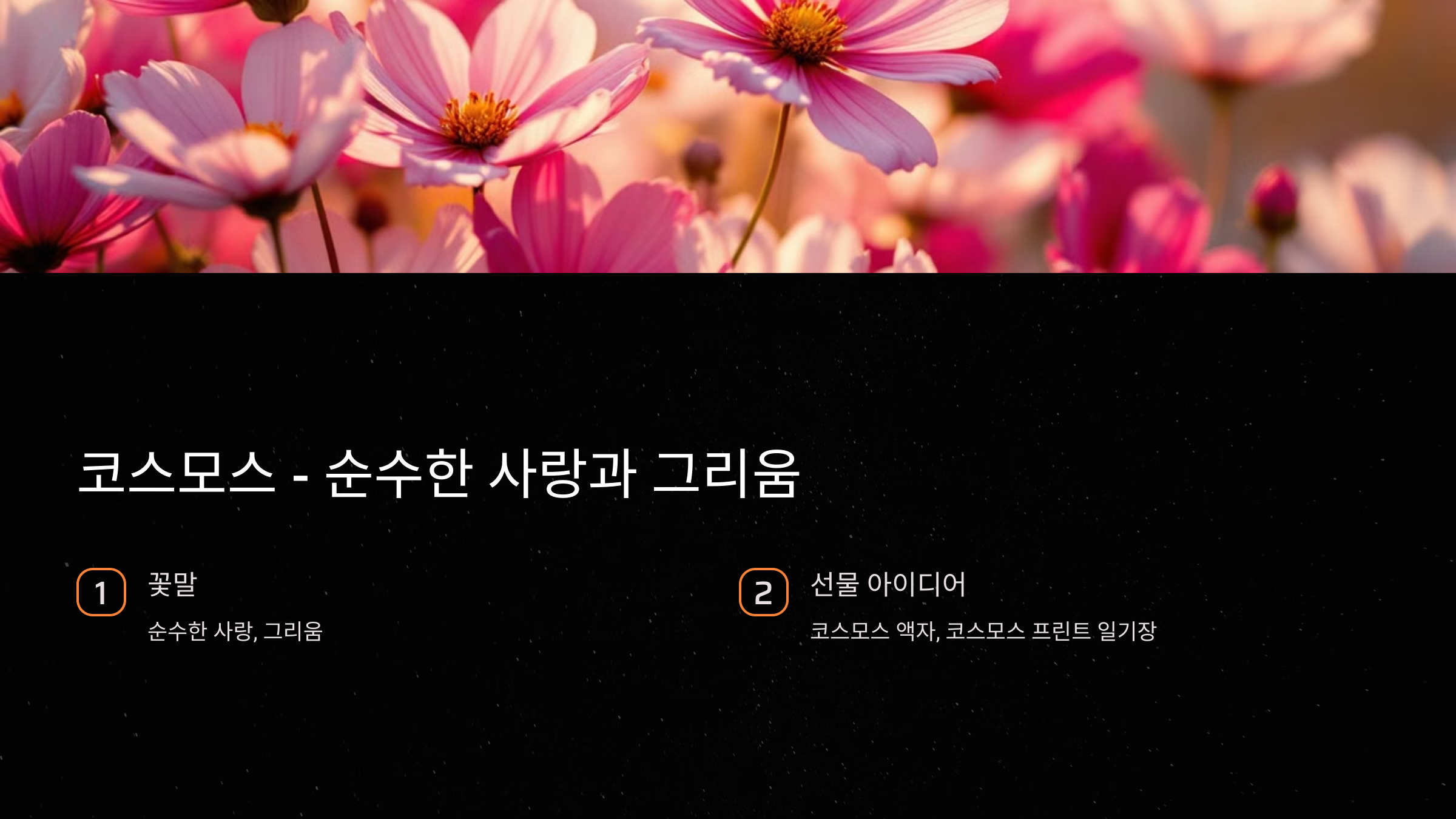 꽃말: 코스모스는 ‘순수한 사랑’과 ‘그리움’을 의미합니다.