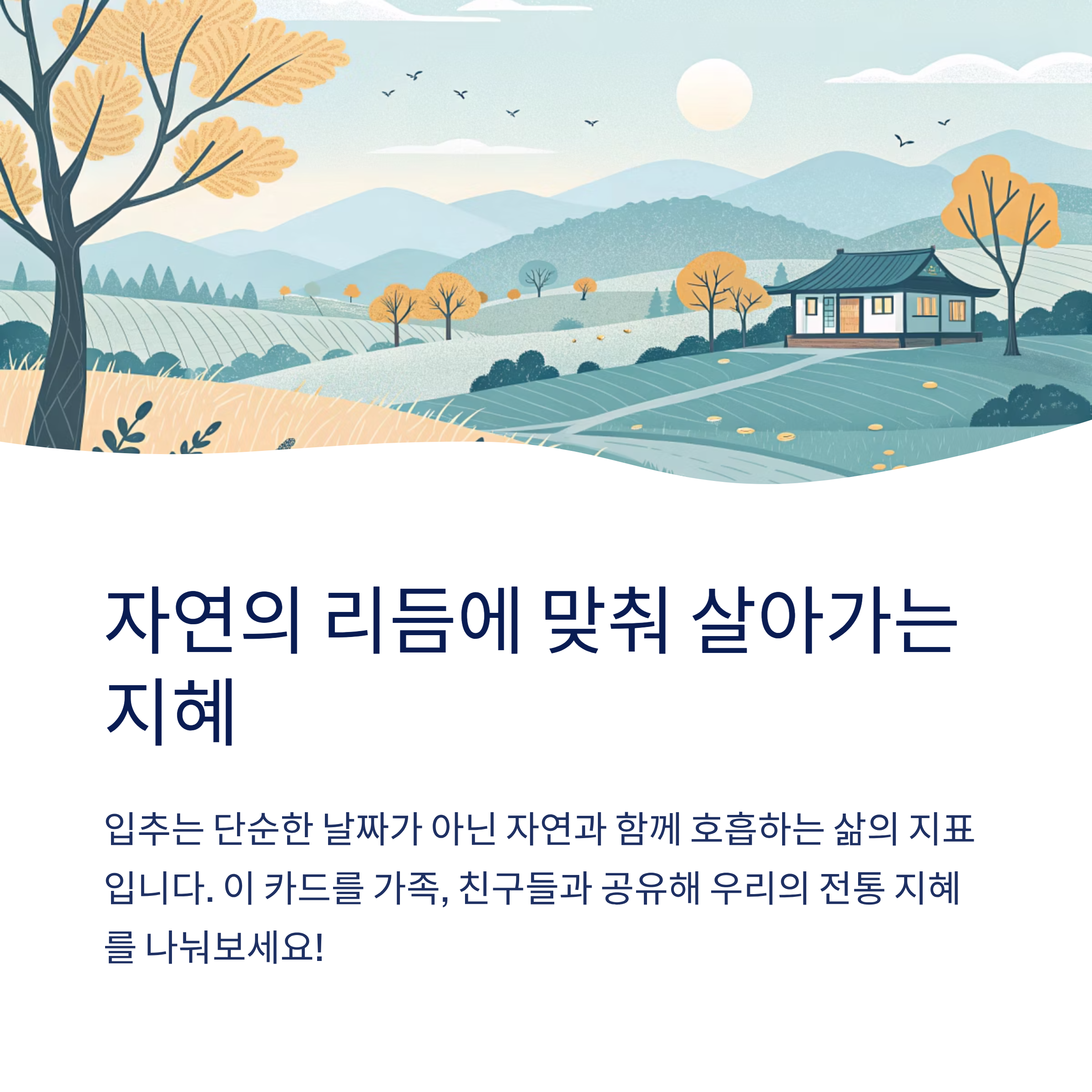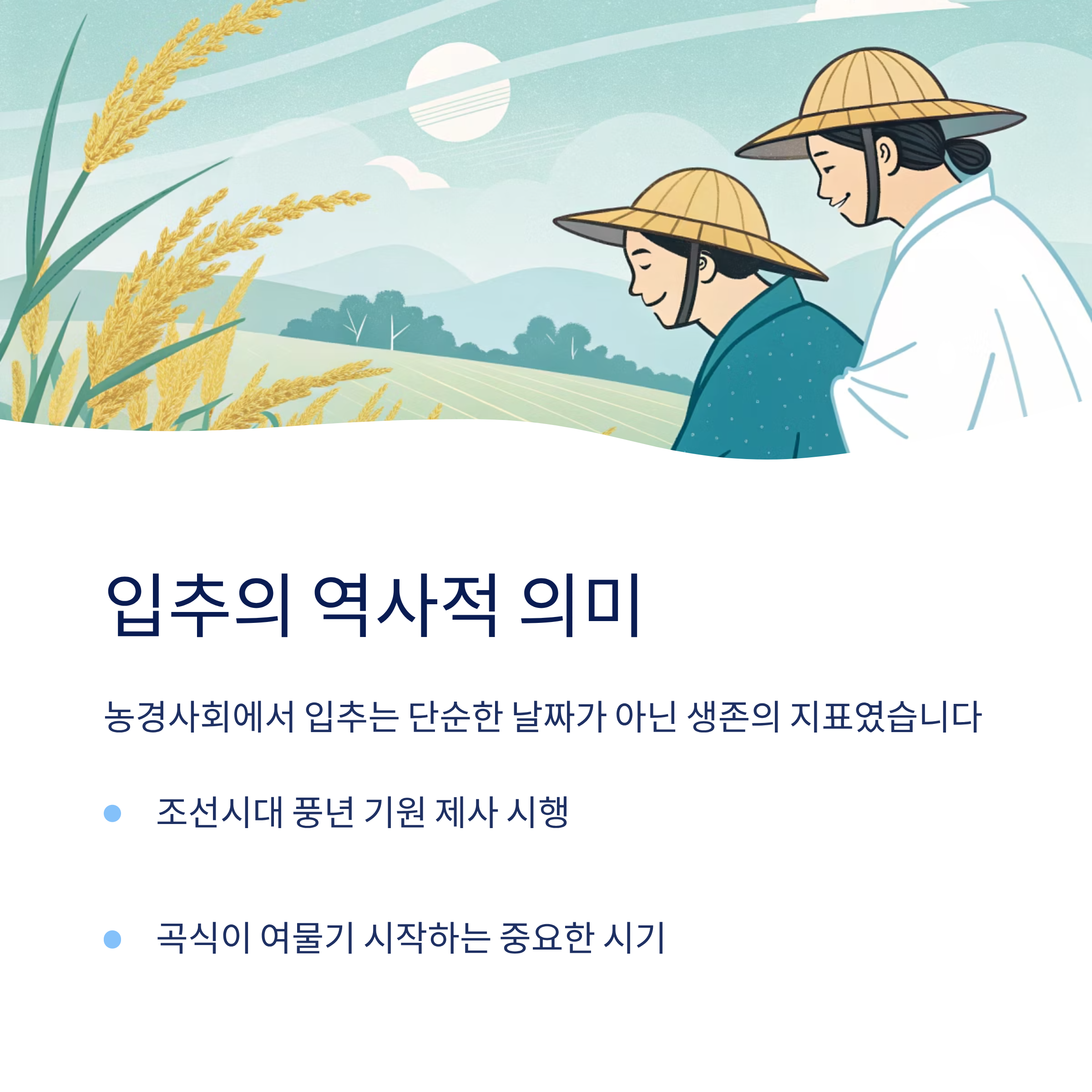 이런 전통은 시대가 지나도 그 본질은 변하지 않아요. 입추는 단지 여름이 끝났다는 메시지 이상의 문화적 의미를 가진 날이란 걸 느끼게 되죠.