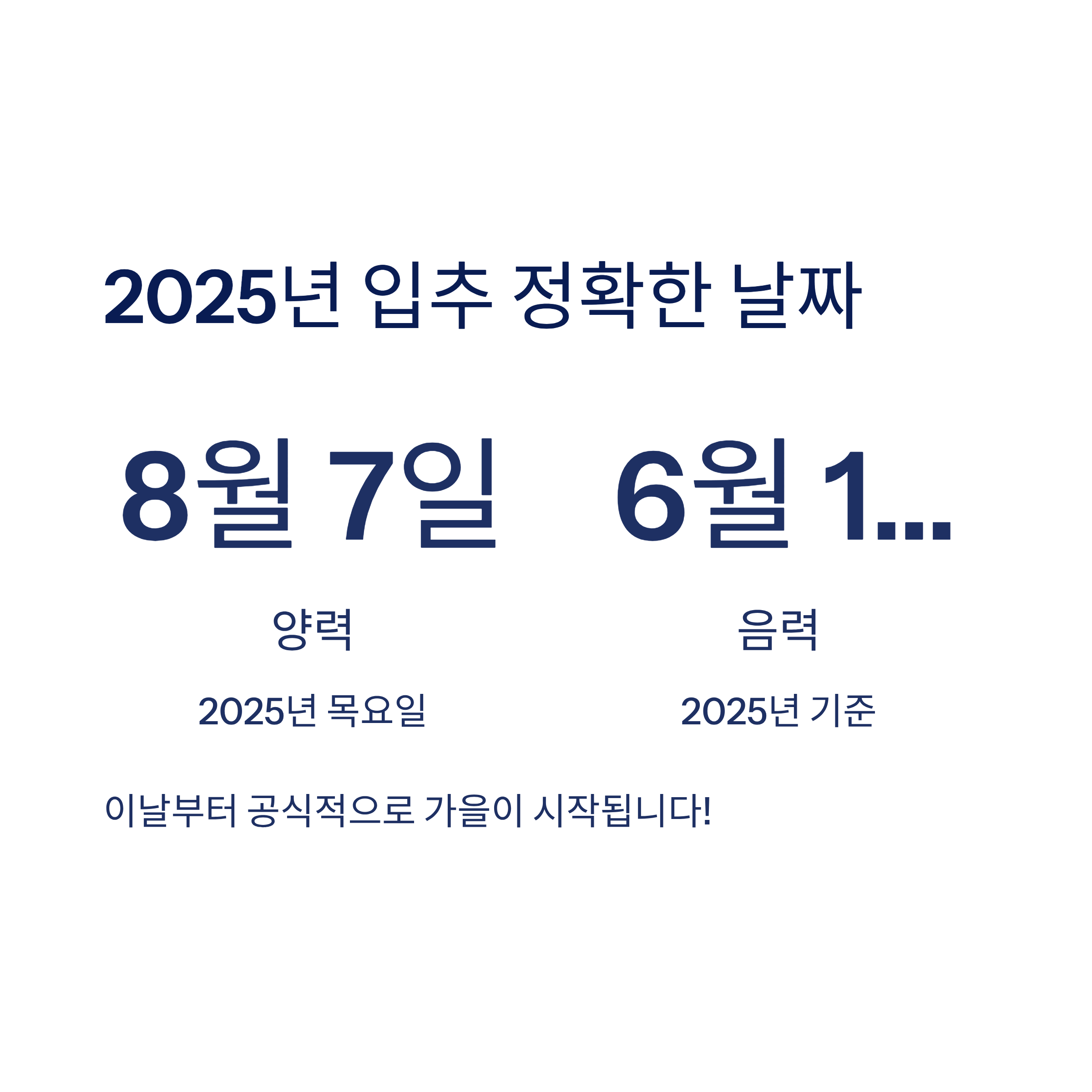 입추가 양력으로는 매년 일정해 보이지만, 음력에서는 달라져요. 2025년 입추는 음력 6월 14일이에요. 음력을 기준으로 절기를 보면 해마다 계절의 감각이 조금씩 달라진다는 걸 느낄 수 있어요. 제가 생각했을 때, 절기 기준으로 계절을 체감하는 것이 우리가 자연과 더 가까워지는 좋은 방법 같아요 🍂